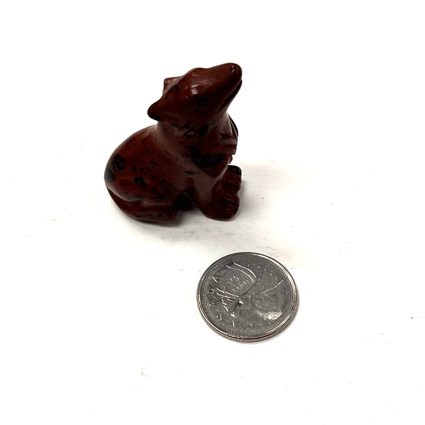 Mahogany Obsidian carved wolves offer grounding, protection, and strength rooted in resilience.