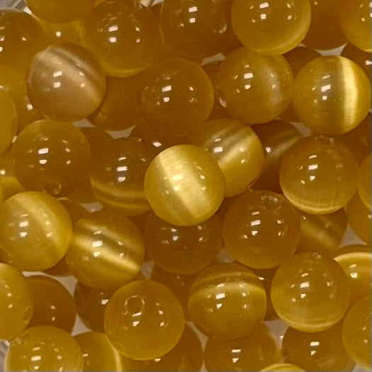 Yellow Cat’s Eye is a vibrant, energizing stone associated with confidence, willpower, and protection. It stimulates the solar plexus chakra, enhancing motivation, focus, and personal power. Known for its chatoyant “eye” effect, it’s also believed to ward off negative energy and bring luck, clarity, and mental strength—making it a powerful ally for decision-making and self-belief.
