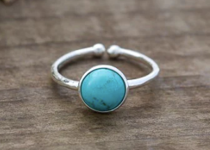 Adjustable Turquoise Ring (Silver Plated)