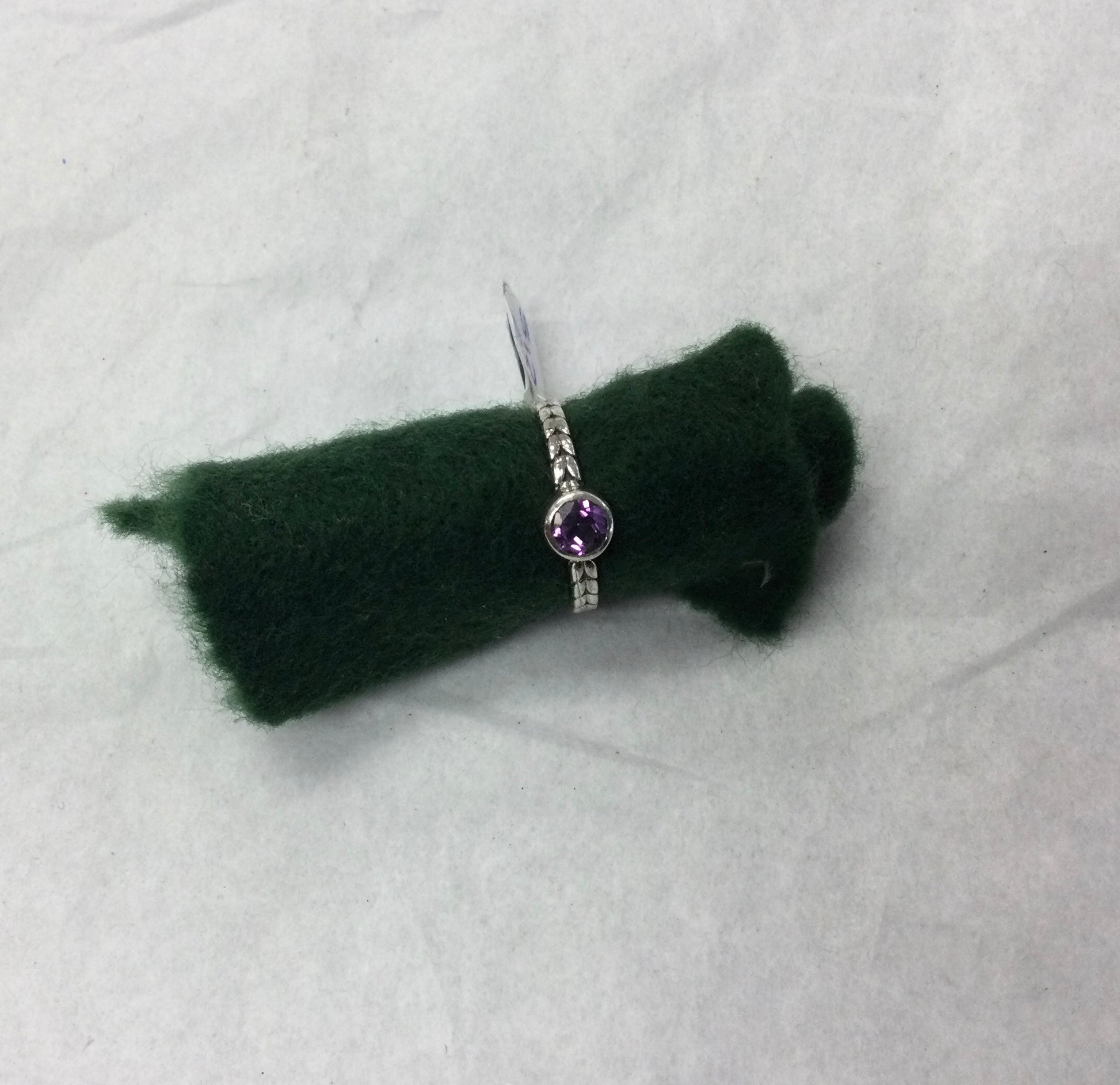 Amethyst Ring with Etched Braid Silver Band, size 6