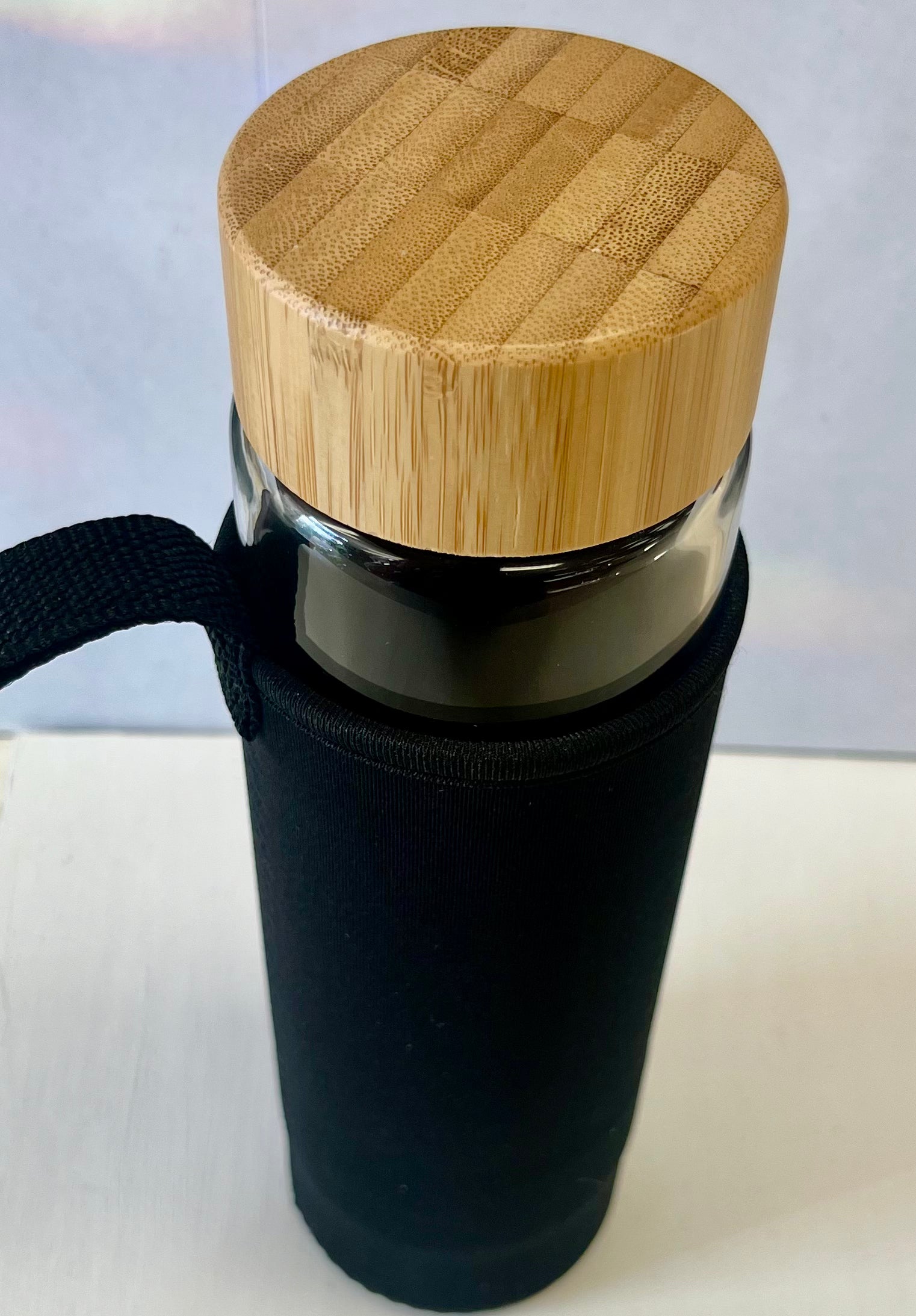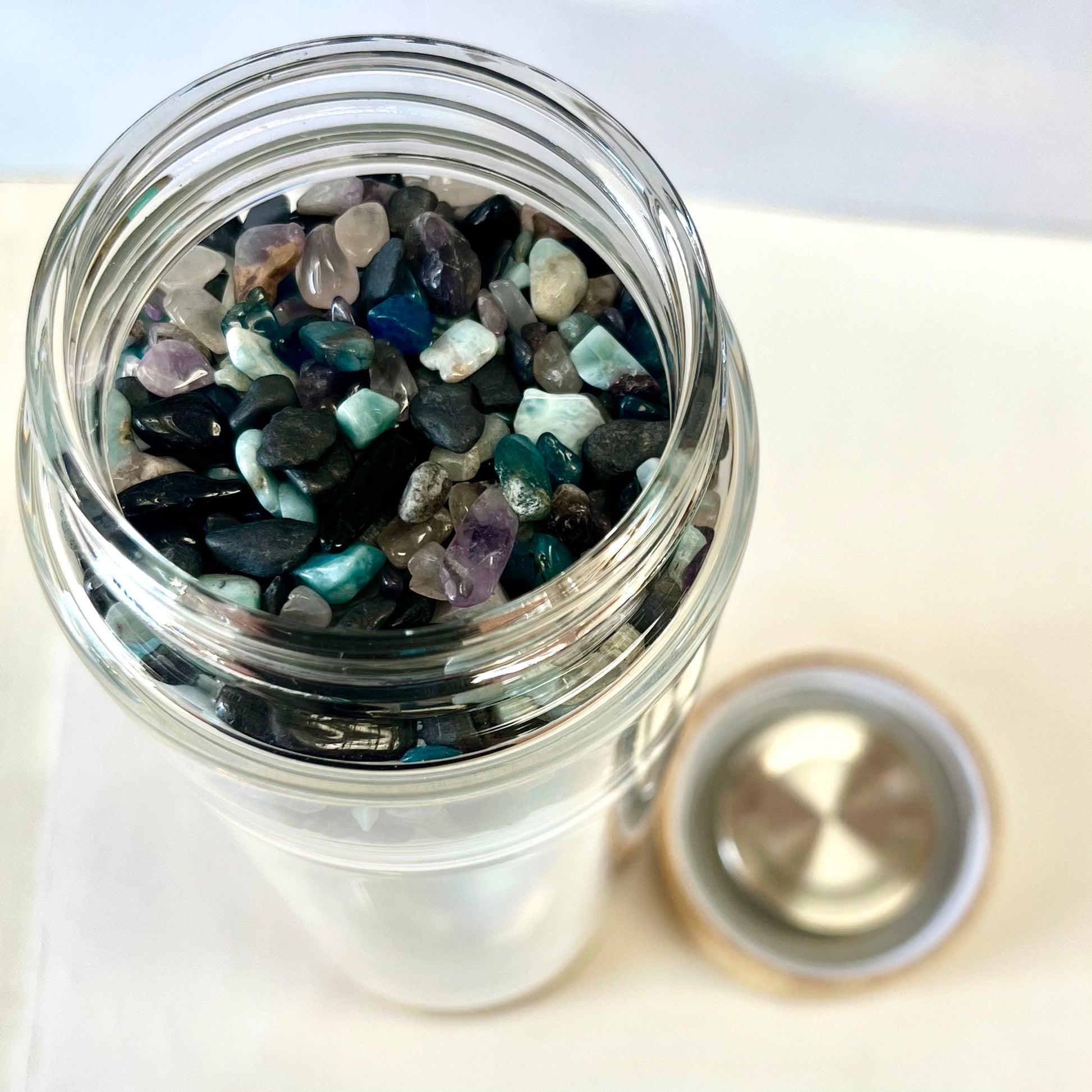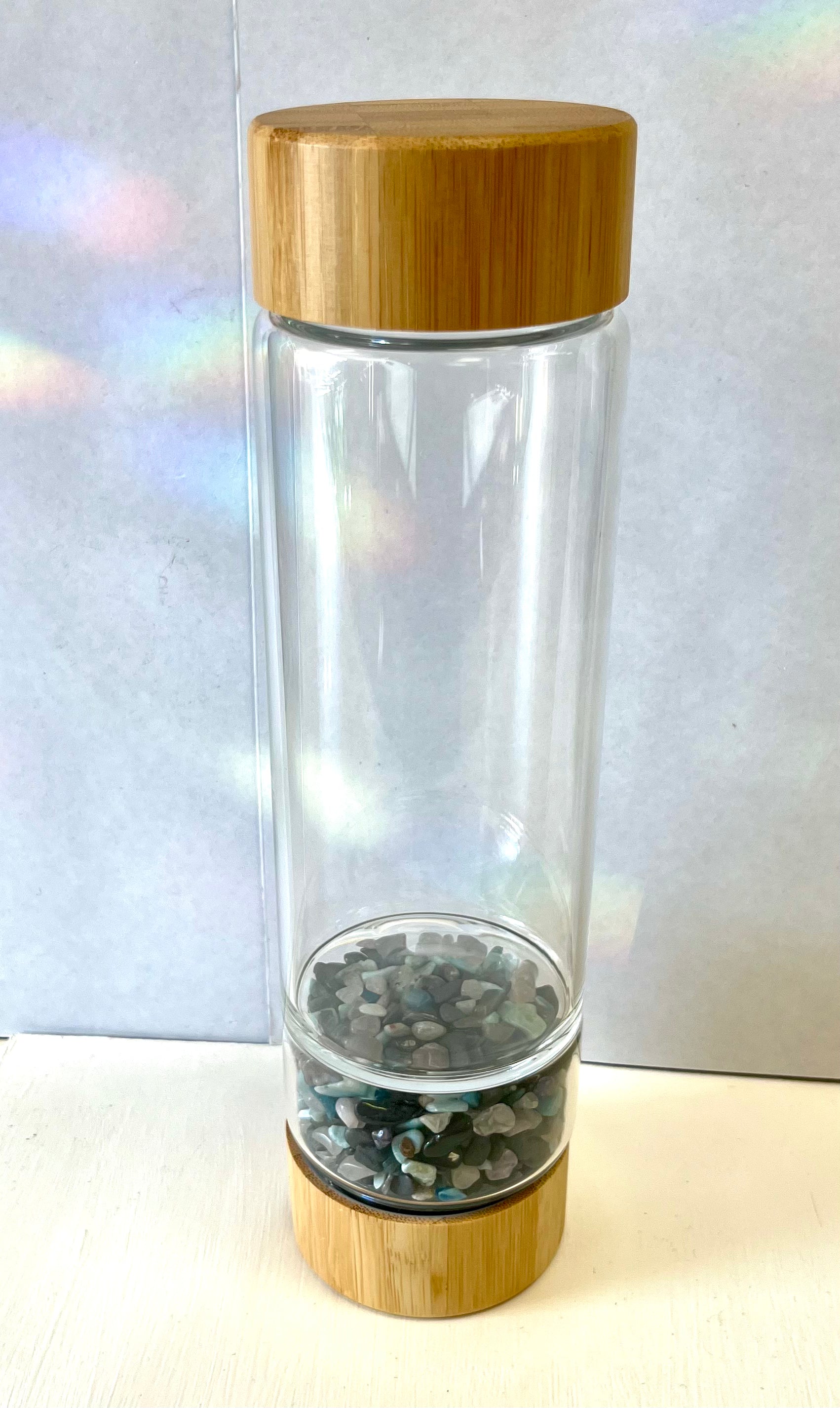 Bamboo Lid Glass Bottle w/ Crystal Chipstones - For Anxiety & Calmness