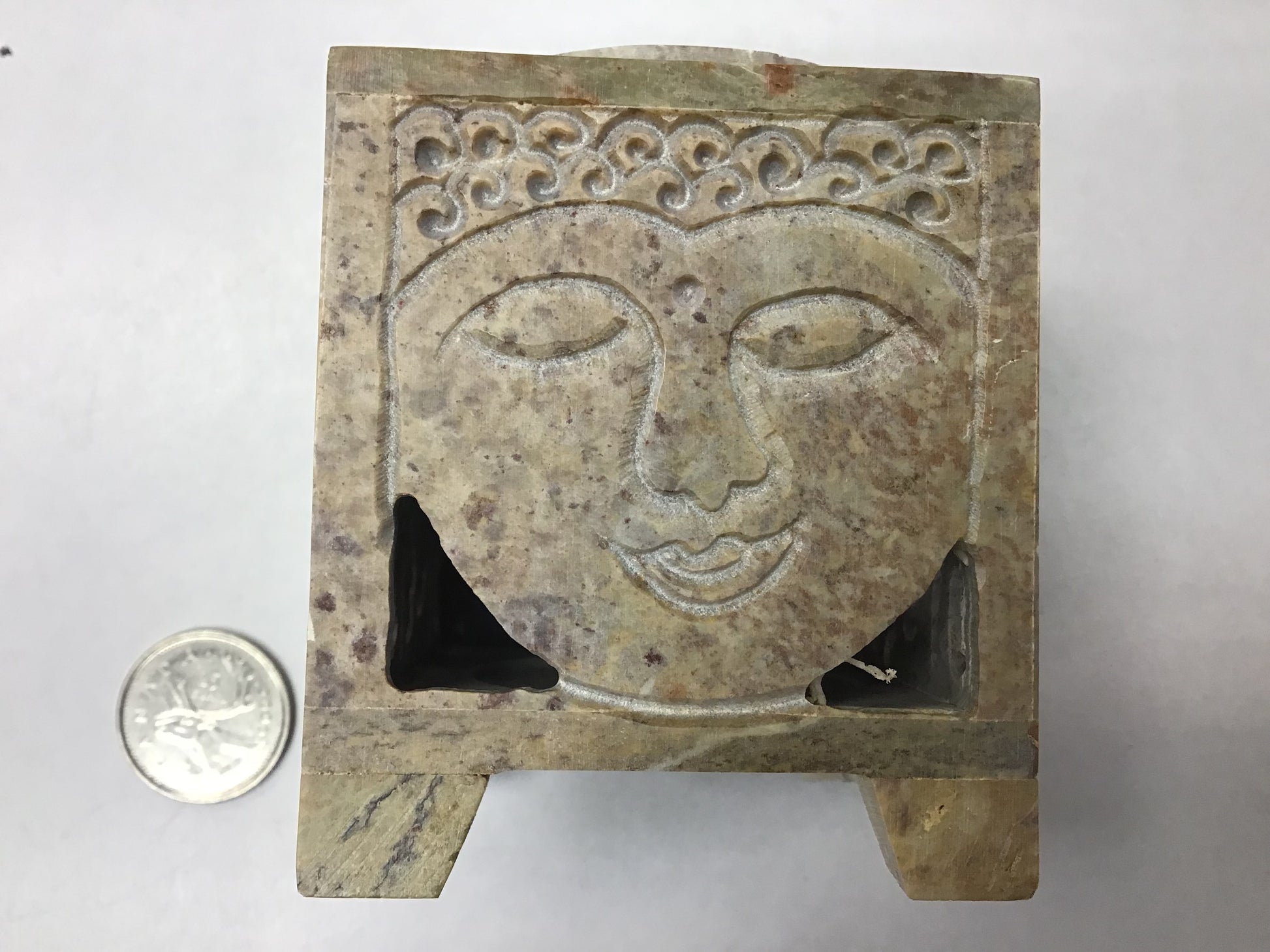 6.5 x 6.5cm soapstone diffusers with Buddha face and Sanskrit writing