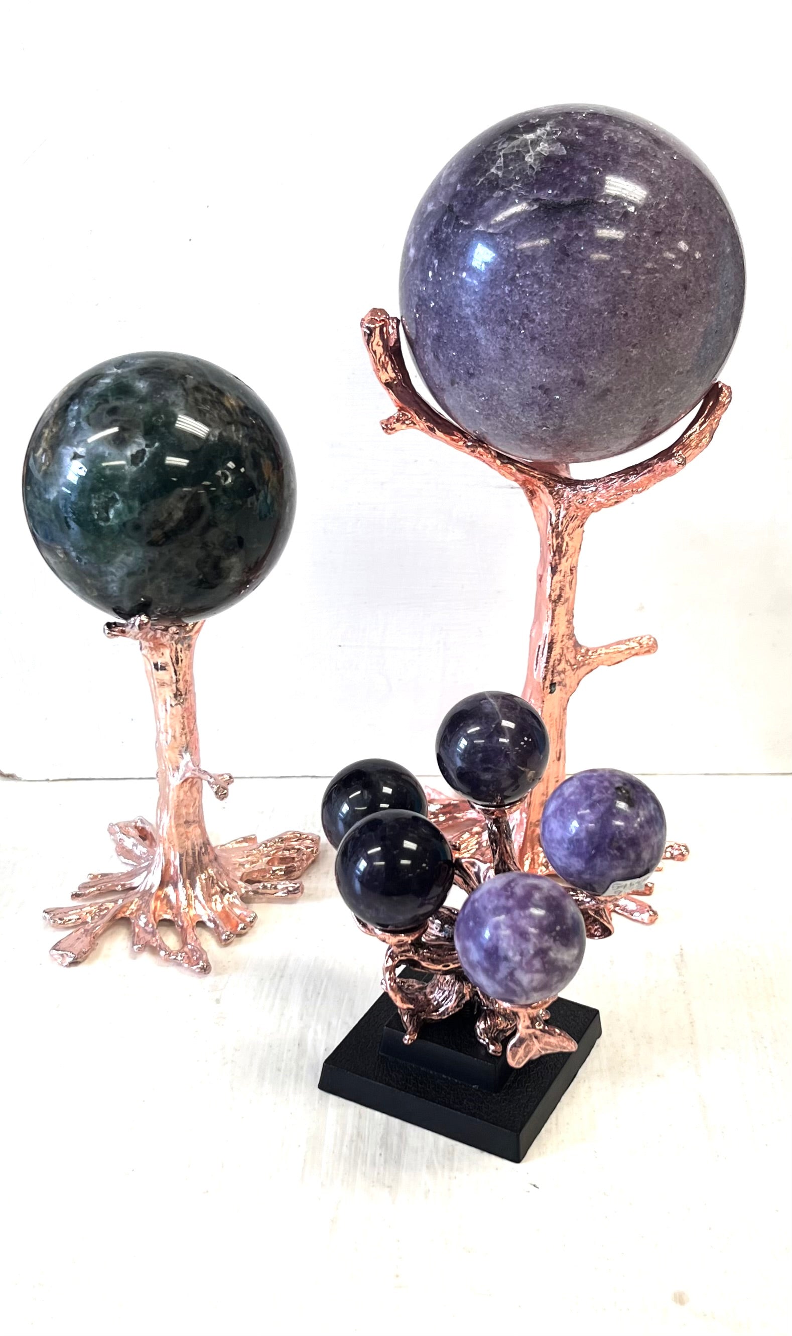 The Copper Tree Sphere Holder is available in three varying sizes.