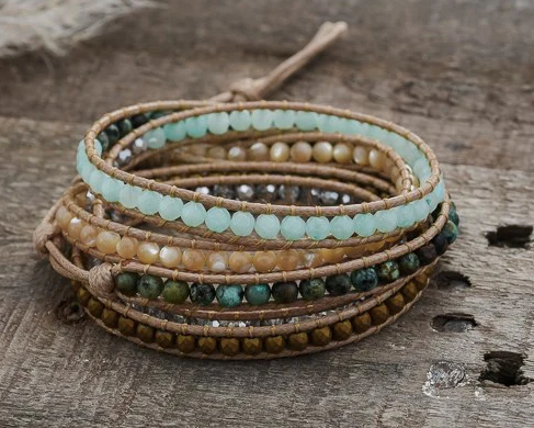The small, round, natural stone beads wrap seamlessly around your wrist, symbolic of the orderly system comprising the physical universe.