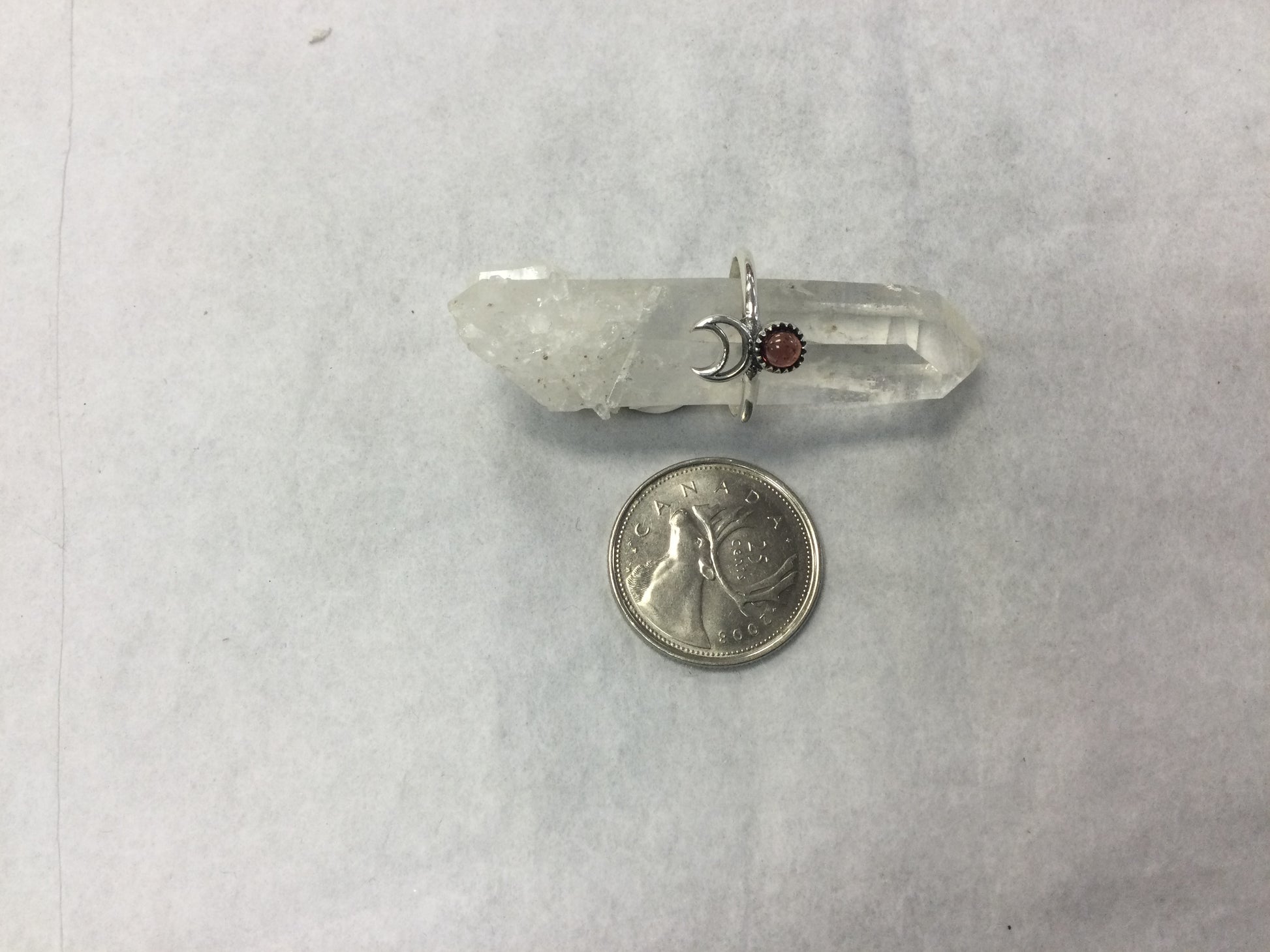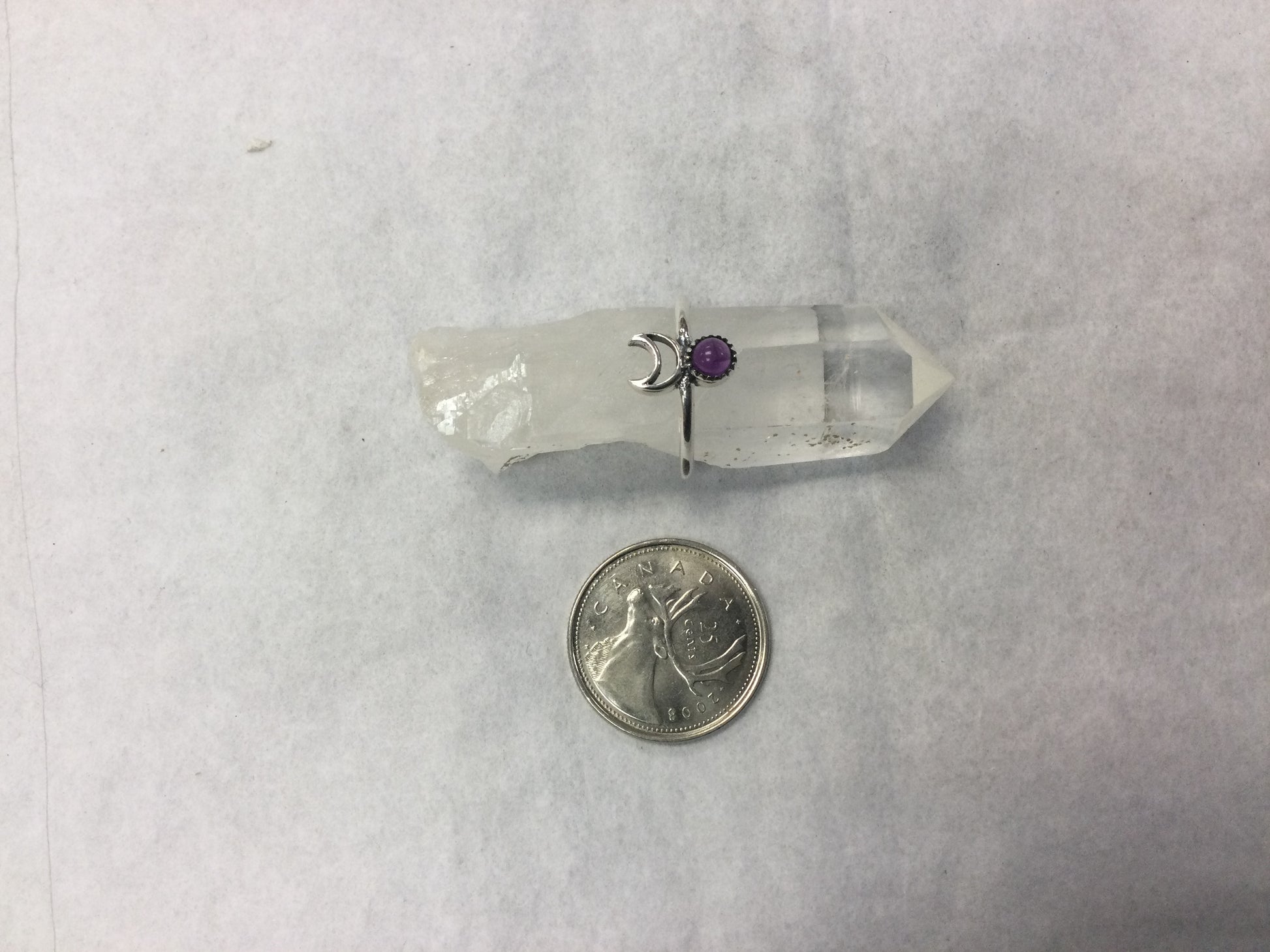 Sterling silver ring with cutout crescent moon and assorted stone. Various sizes.