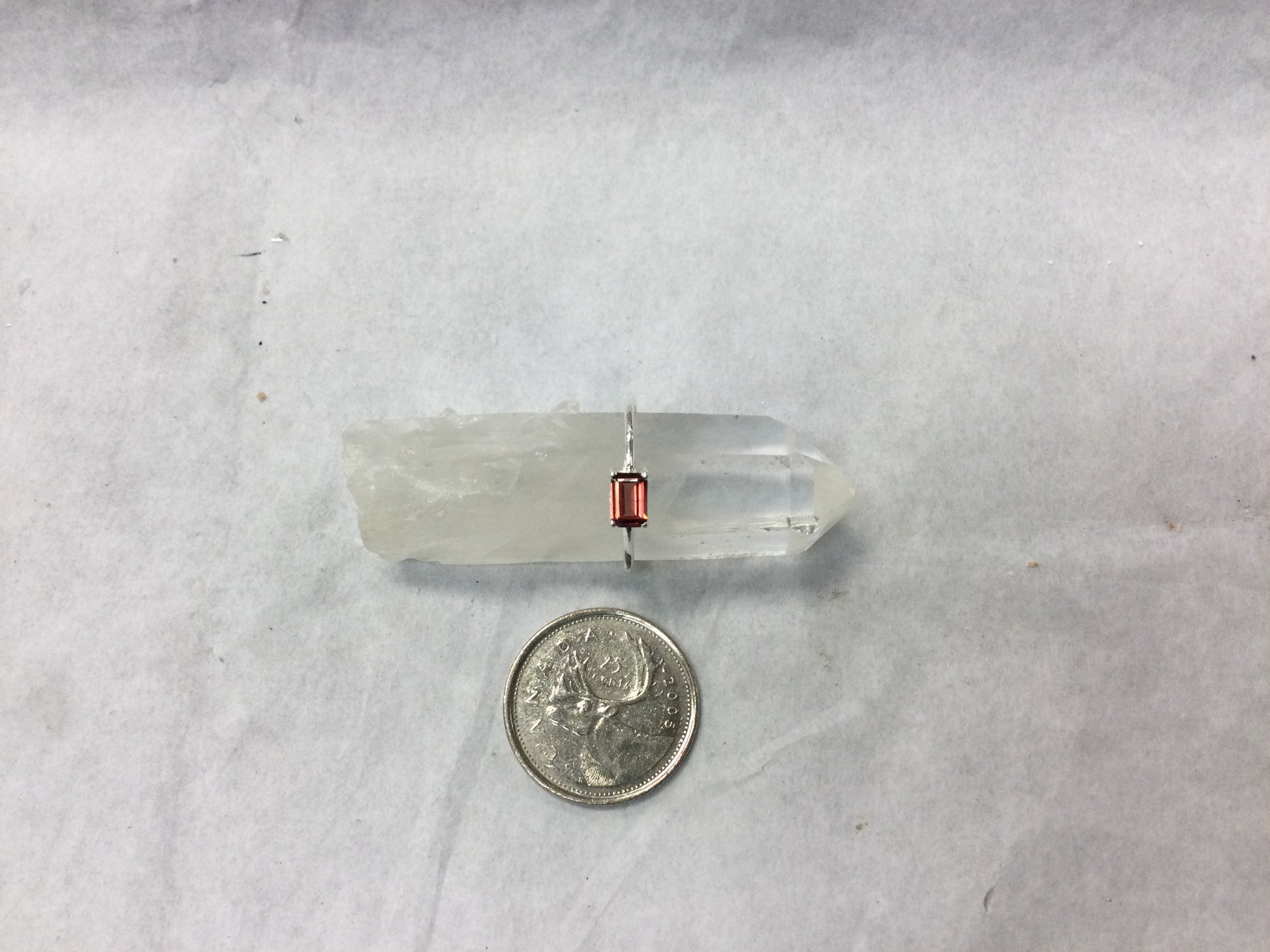925 Sterling silver ring with rectangular faceted garnet set in a simple band. Size 9.