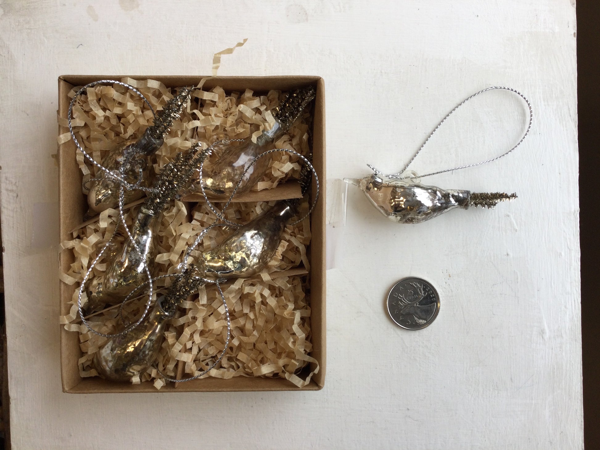 Set of 6 Mini Glass Vintage Bird Ornaments
