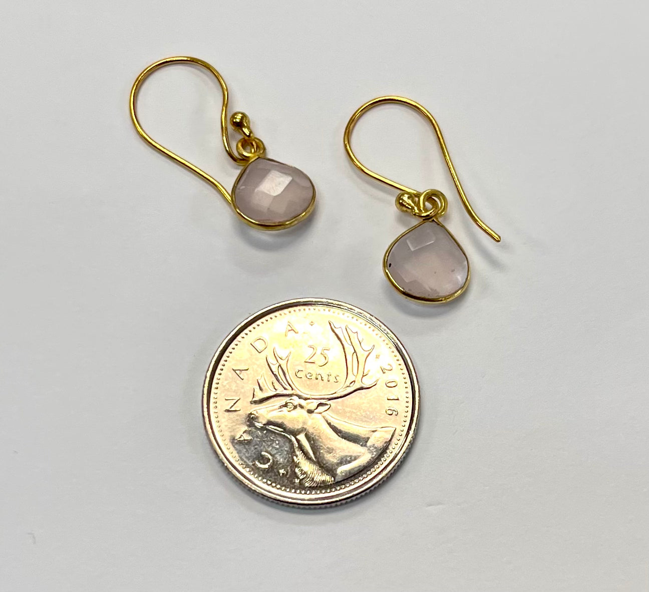 Gold Plated Faceted Rose Quartz Tear Drop Dangle Earrings