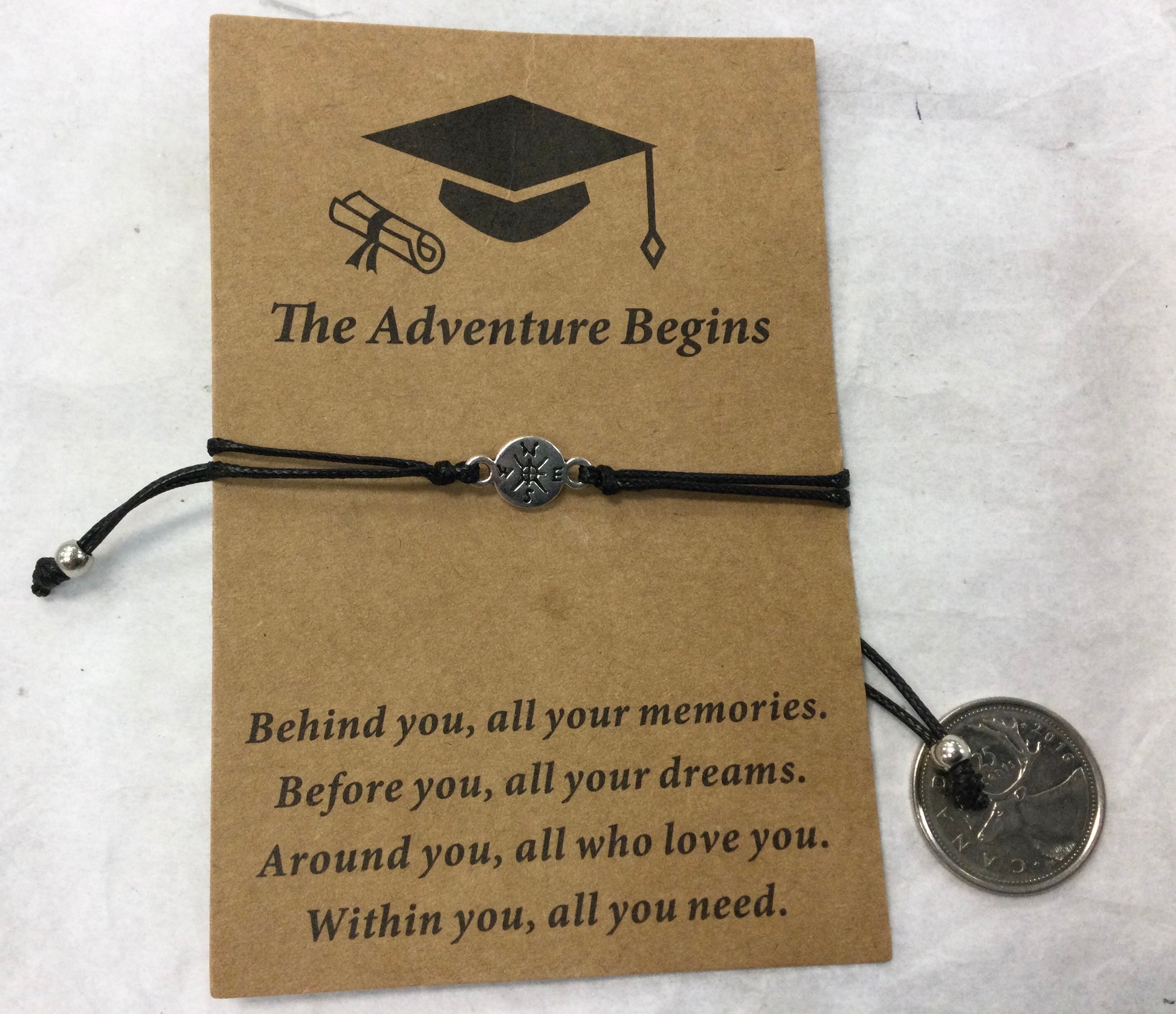 Graduation Platinum Plated Compass Bracelet, Compass Woven Adjustable Bracelet Jewelry,
