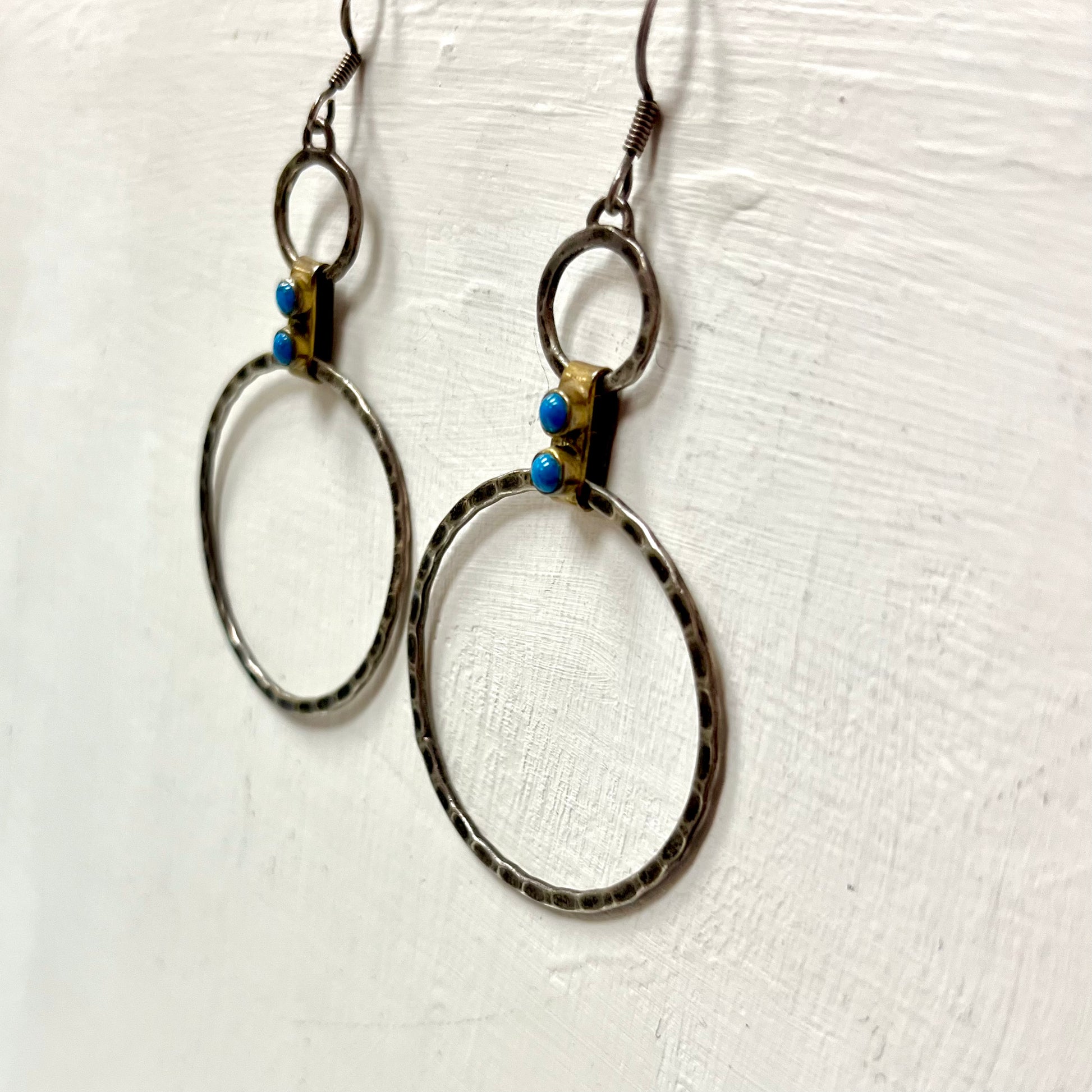 Hammered Circles - Drop Earrings Mixed Metal