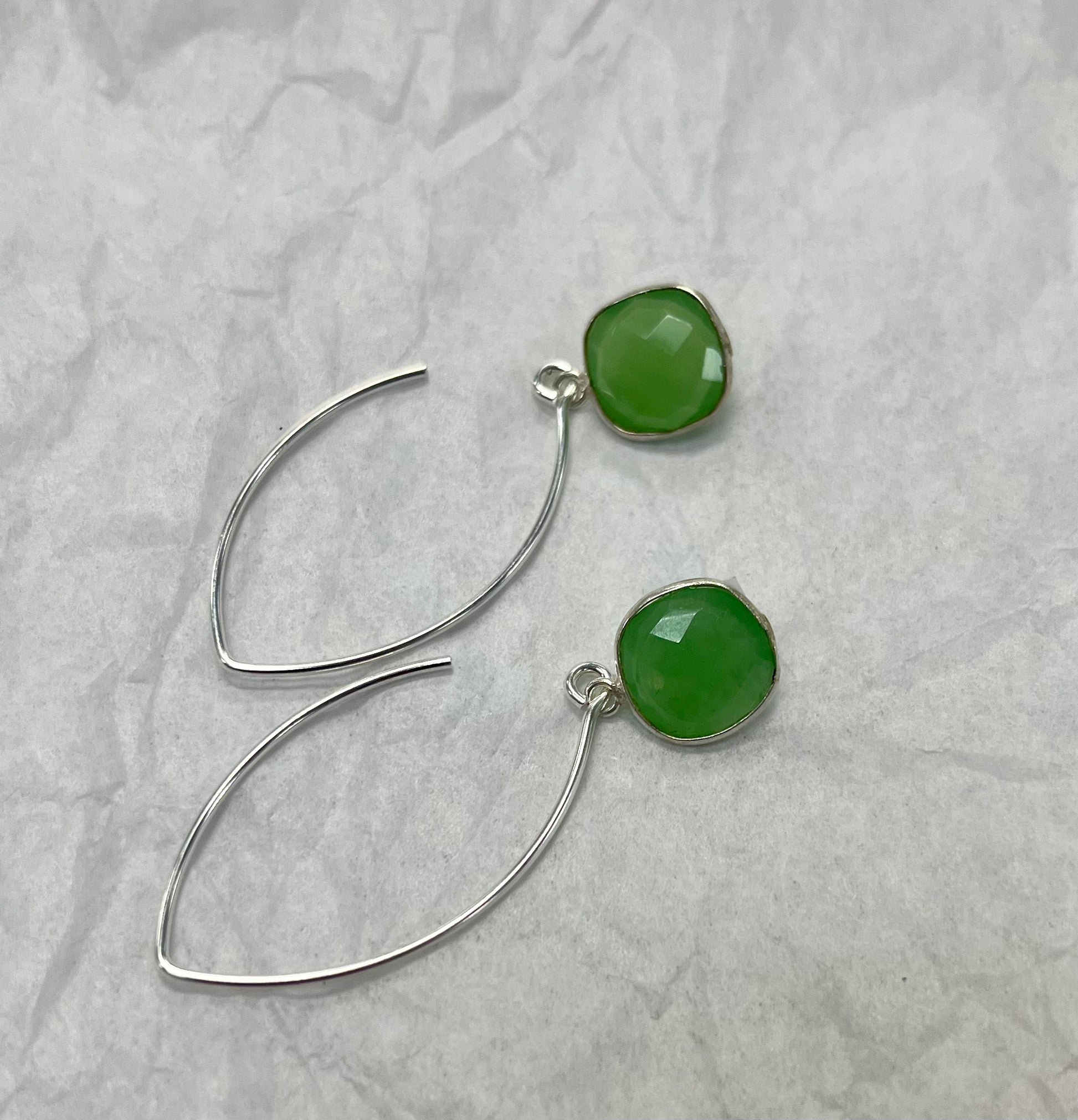 Handcrafted Dangle Silver Earring with Faceted Green Chalcedony