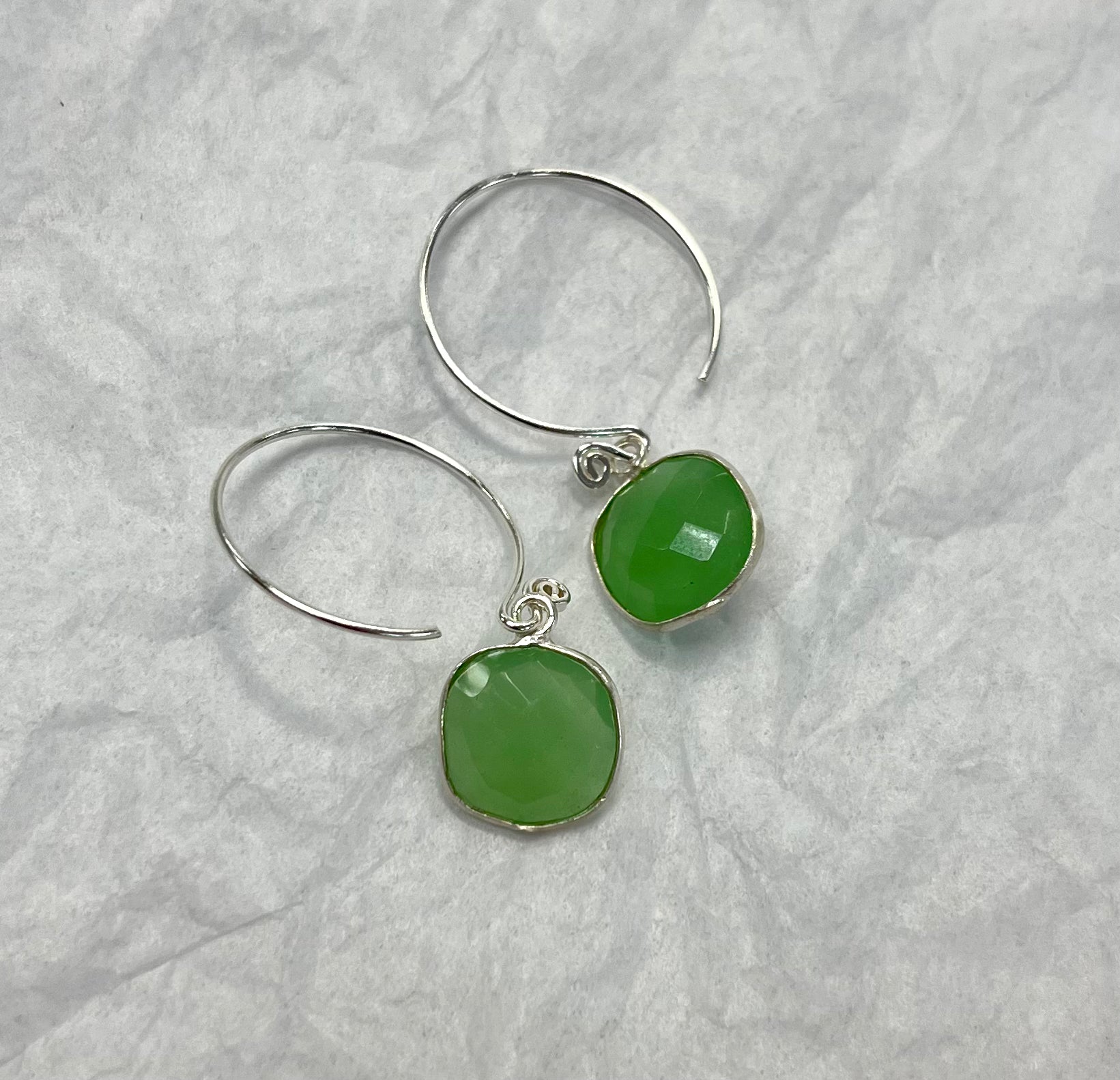 Handcrafted Dangle Silver Earring with Faceted Green Chalcedony Small