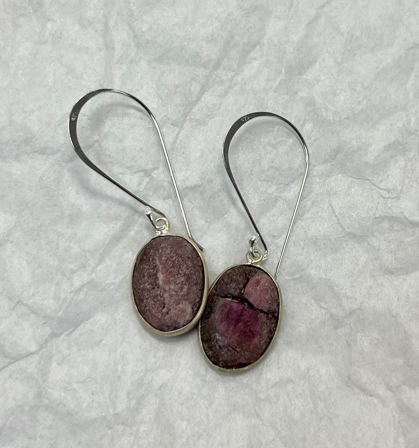 Handcrafted Dangle Silver Earring with Rough Ruby