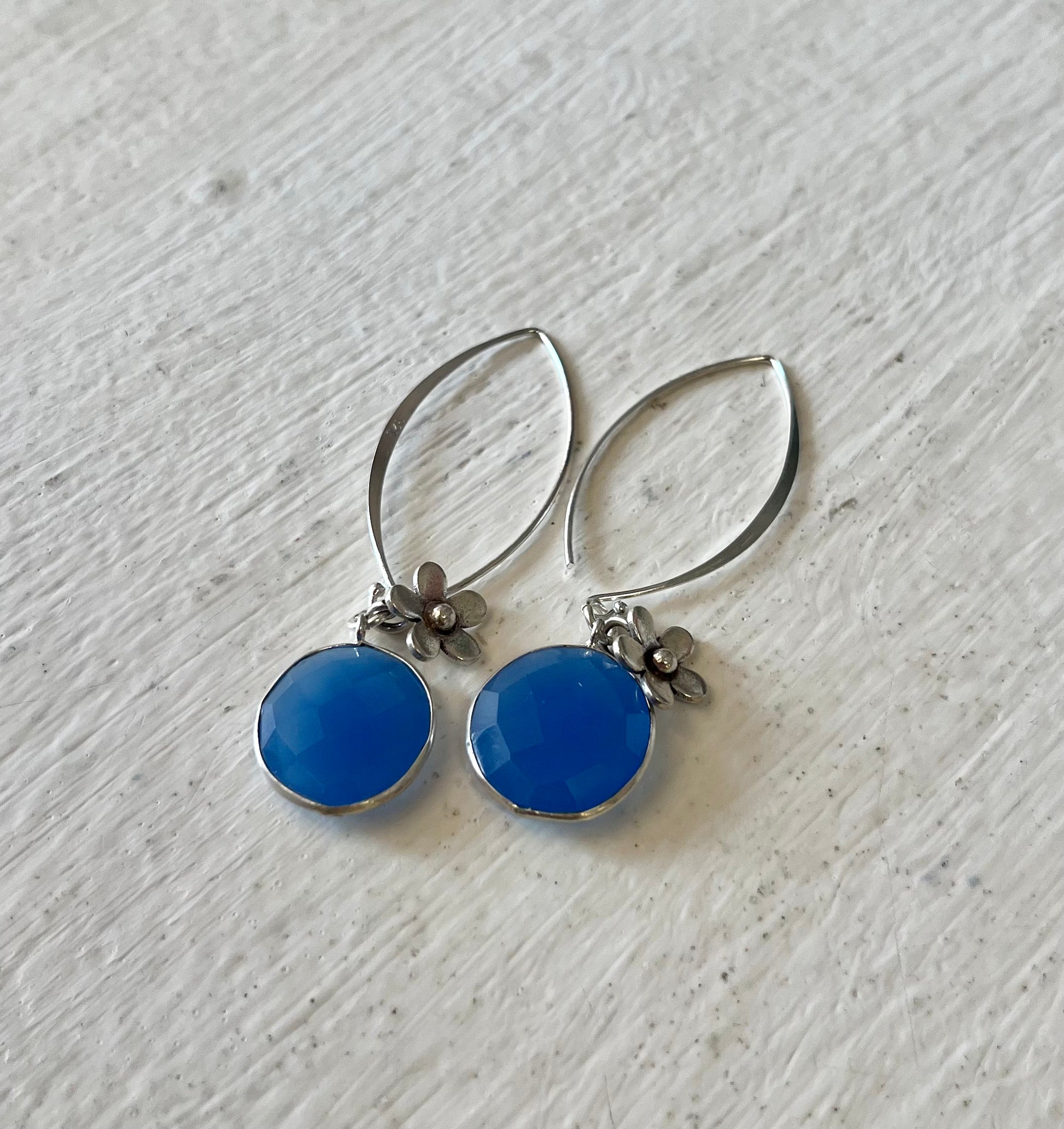 Handmade Faceted Chaceldony Dangle Earring with Silver Flower