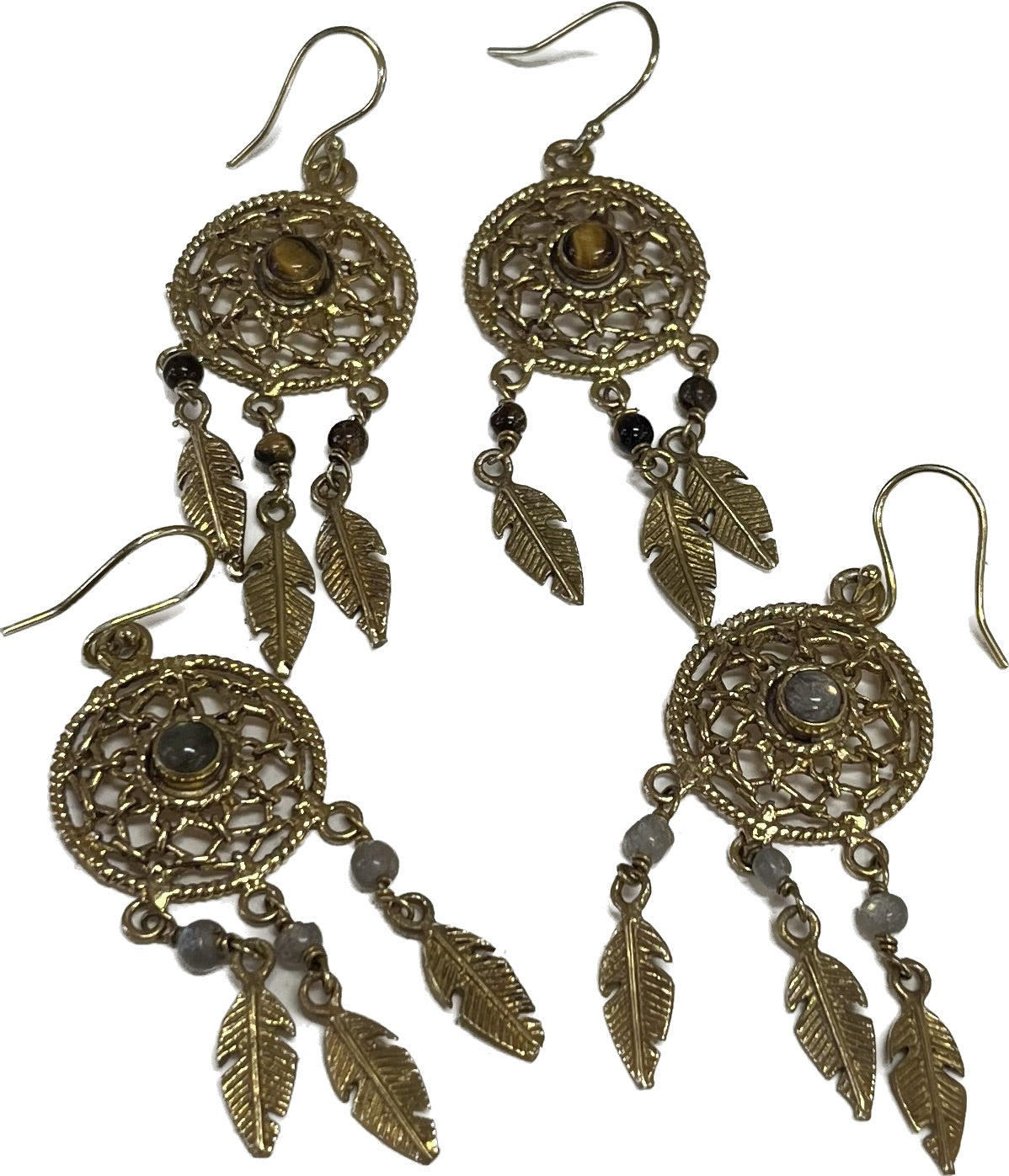 Large Gold Plated Dreamcatcher Earrings with Various Stones