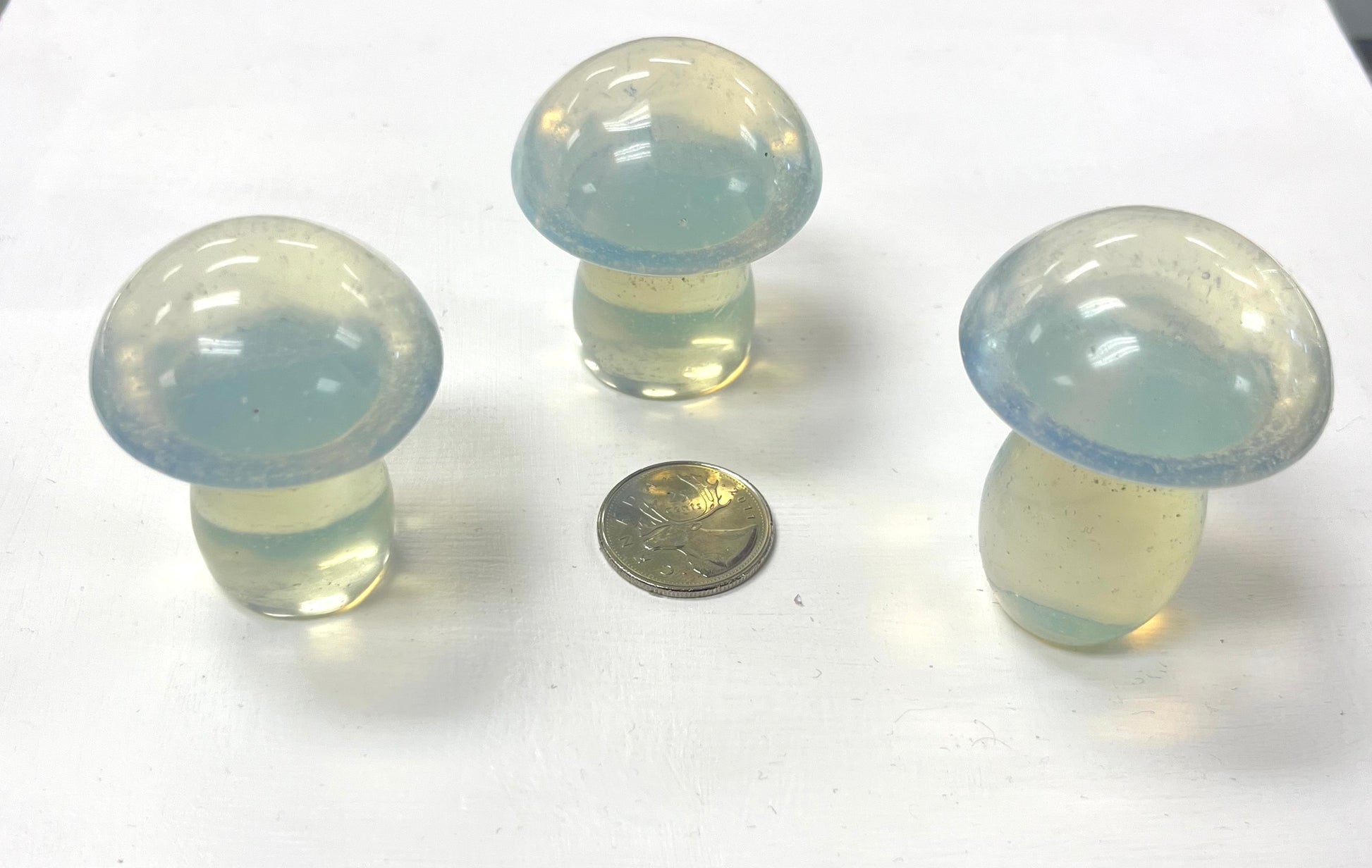 Opalite is known for promoting optimism, curiosity, and going with the flow. Its positive energy dispels negativity and eases heavy hearts. The mushroom symbolizes kundalini energy and enlightenment, with the stalk representing the spine and the cap representing the crown chakra. Use it in various ways, such as holding it, carrying it, or adding it to decorative settings.