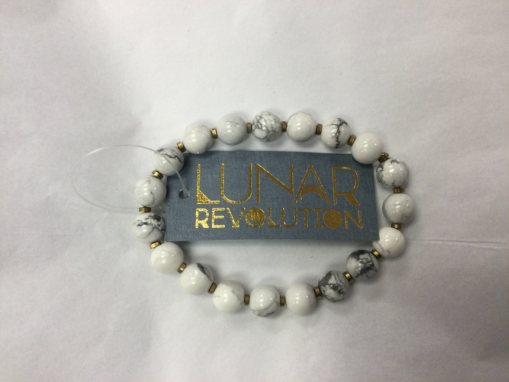 Howlite bracelet by Lunar Revolution with golden spacer beads.
