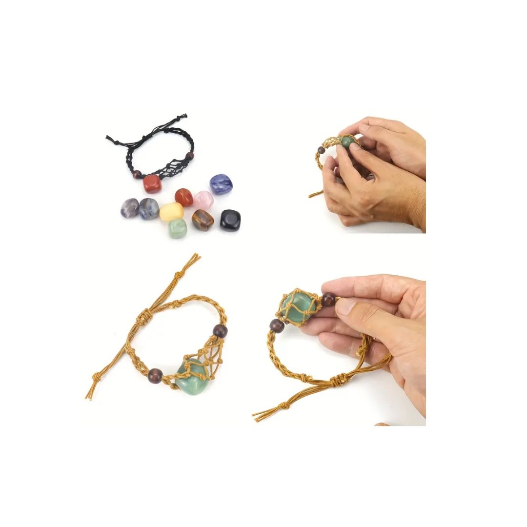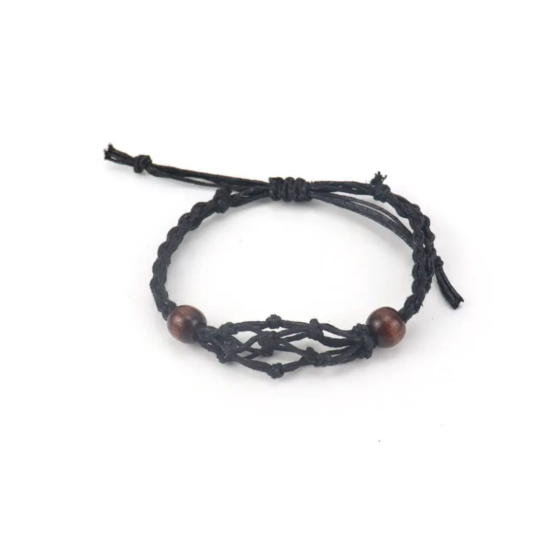 One size black cord with brown wood stones, can add crystal of choice (not included)