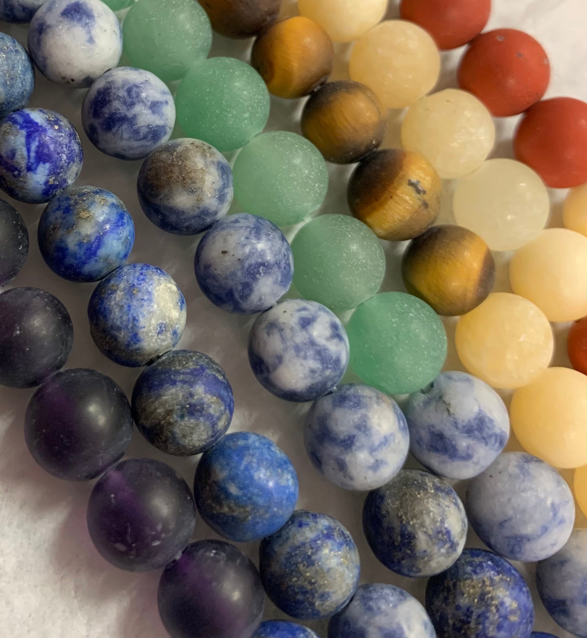Matte Chakra Mix Strand (Amethyst, Lapis, Sodalite, Green Aventurine, Tiger Eye, Yellow Calcite, Red Jasper)