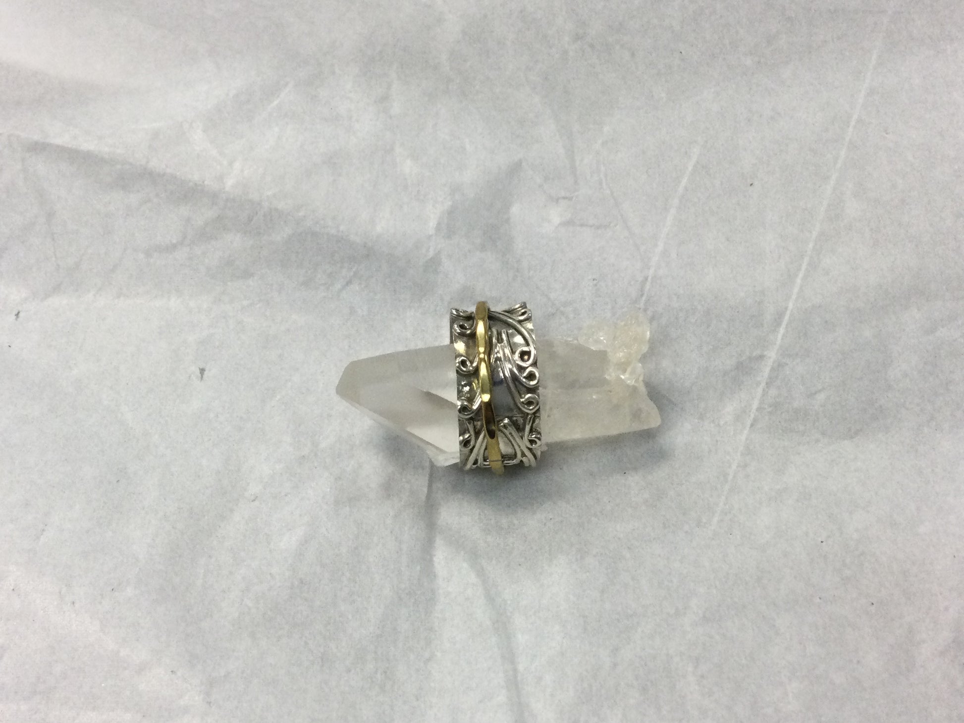 Meditation Ring, Fern Patterned Silver with Gold Band