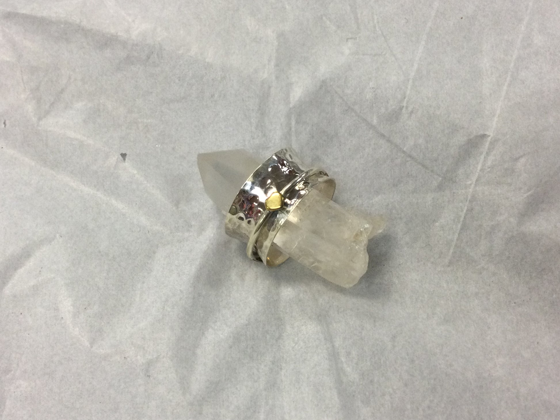 Meditation Ring, Silver Band with Gold, Silver, Brass Hearts size 9
