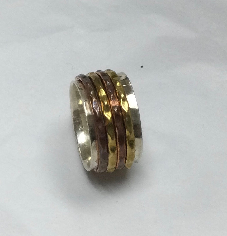 Meditation Ring, Silver with 2 Copper Bands, 2 Brass Bands