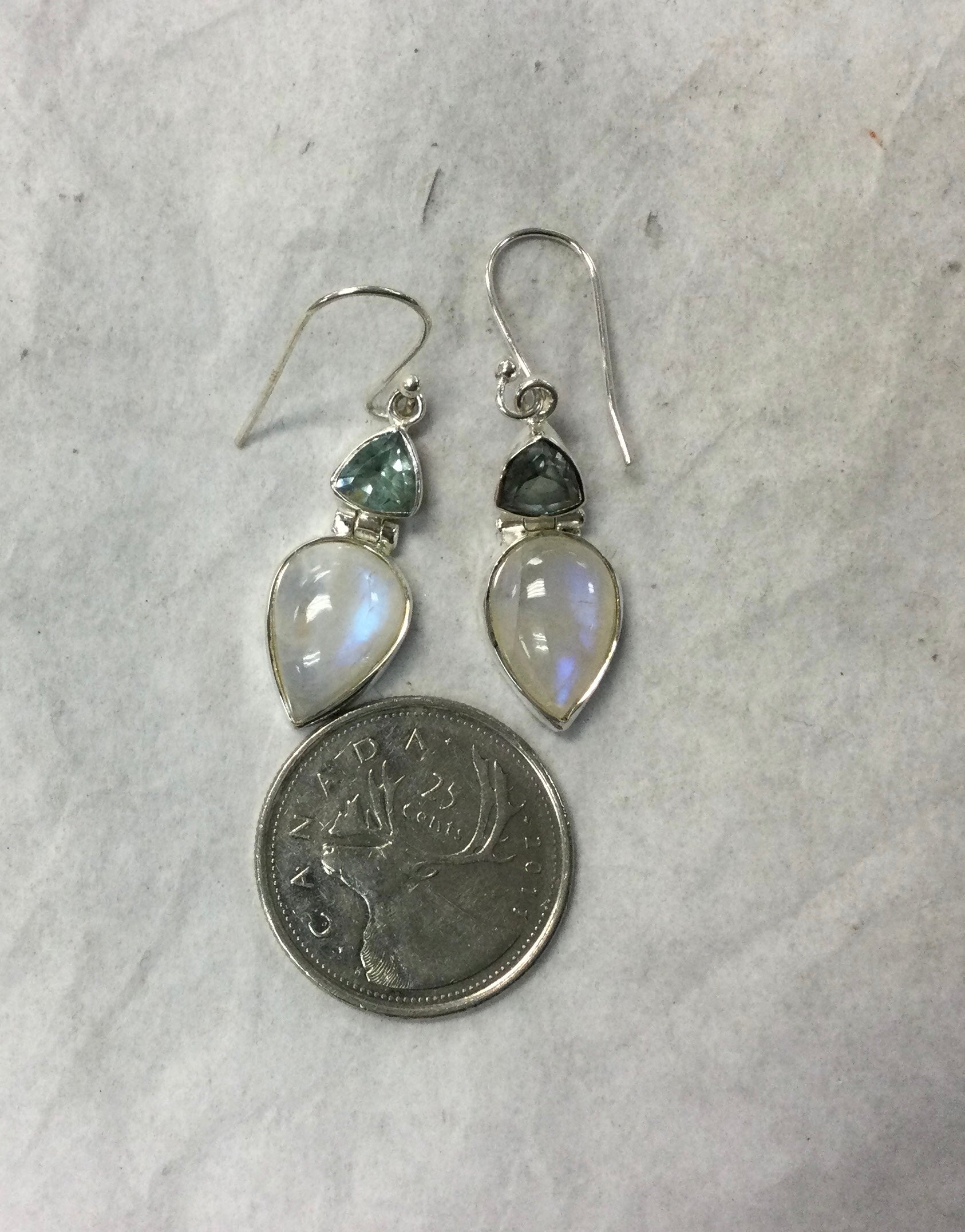 Blue topaz and moonstone set in sterling silver on silver hooks