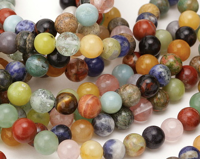 Each strand contains a unique rainbow of 8mm rounds. Picture jasper, sodalite, aventurine, rose quartz & tiger eye are just some of stones included in these lovely multi stone strands.