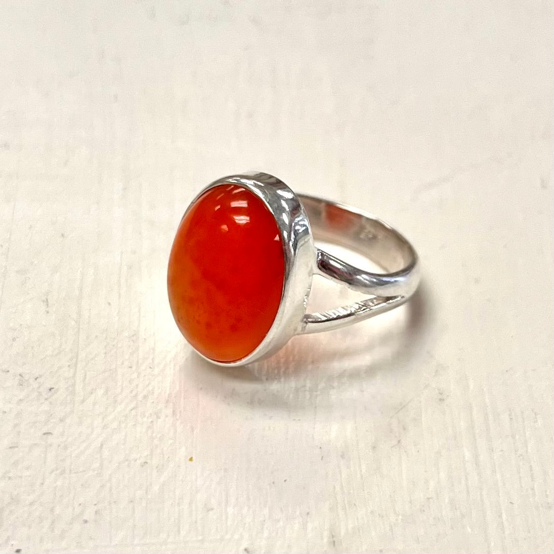 Oval Carnelian Ring Set in Silver