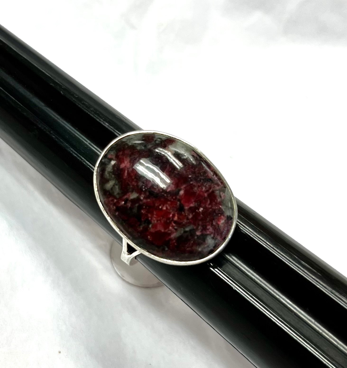 Oval Rubellite ring set in silver size 8