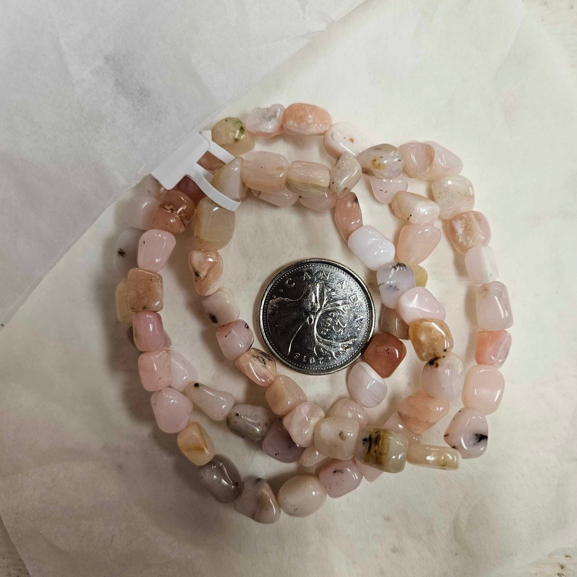 Pink opal : can activate and balance the heart chakra while emitting calming energies that aid in emotional healing, particularly for those dealing with heartache or emotional distress. These stones are often carried or used in meditation to promote feelings of love, compassion, and inner peace. Their vibrations are thought to soothe and comfort, helping individuals navigate through difficult emotions and heal from emotional wounds.