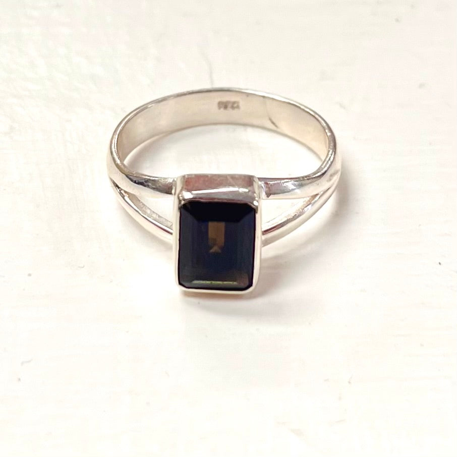Rectangular 8mm Faceted Smoky Quartz Ring in Silver