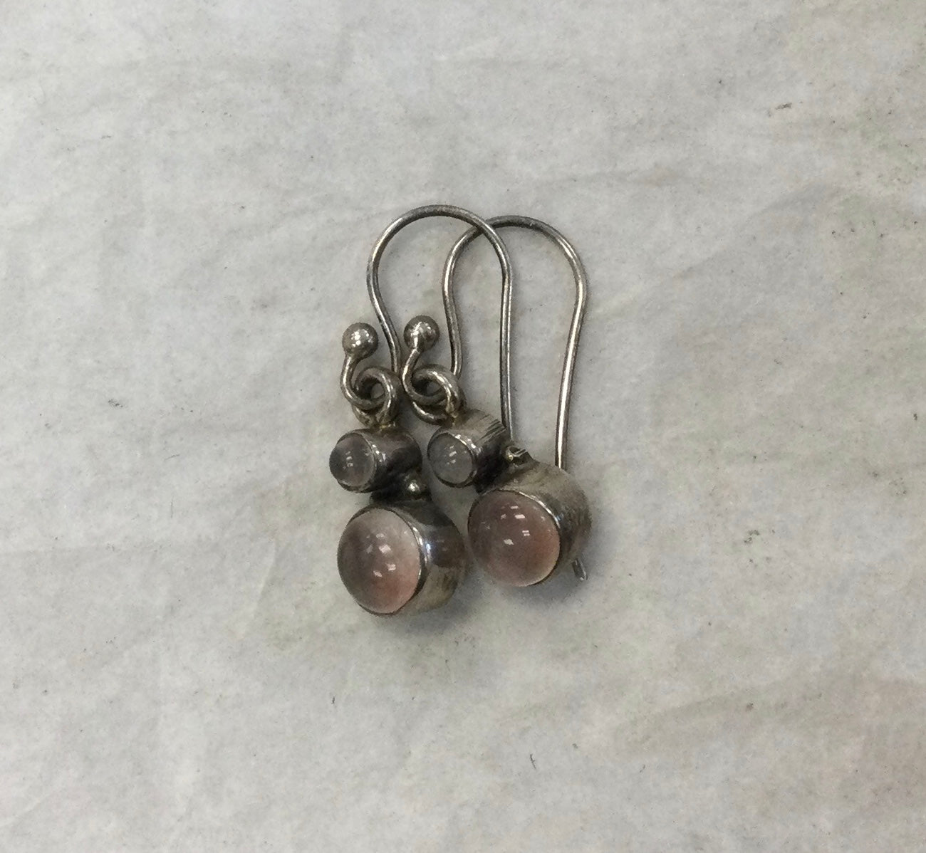 Double Round Rose Quartz Hook Earrings