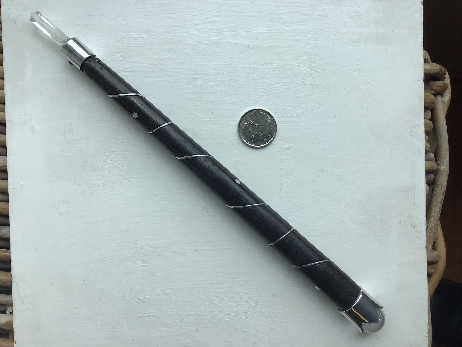 Rose wood wand with Quartz tip. 10.5”.