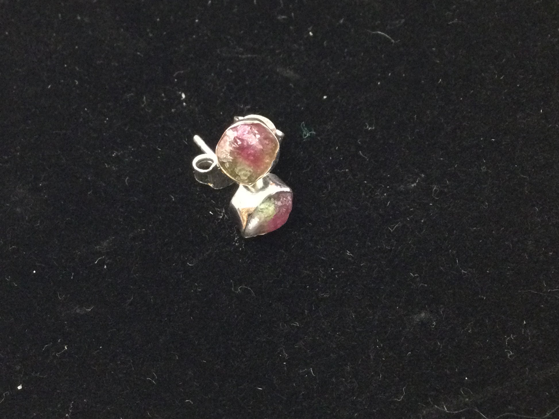 Rough Polished Watermelon Tourmaline Stud Earrings