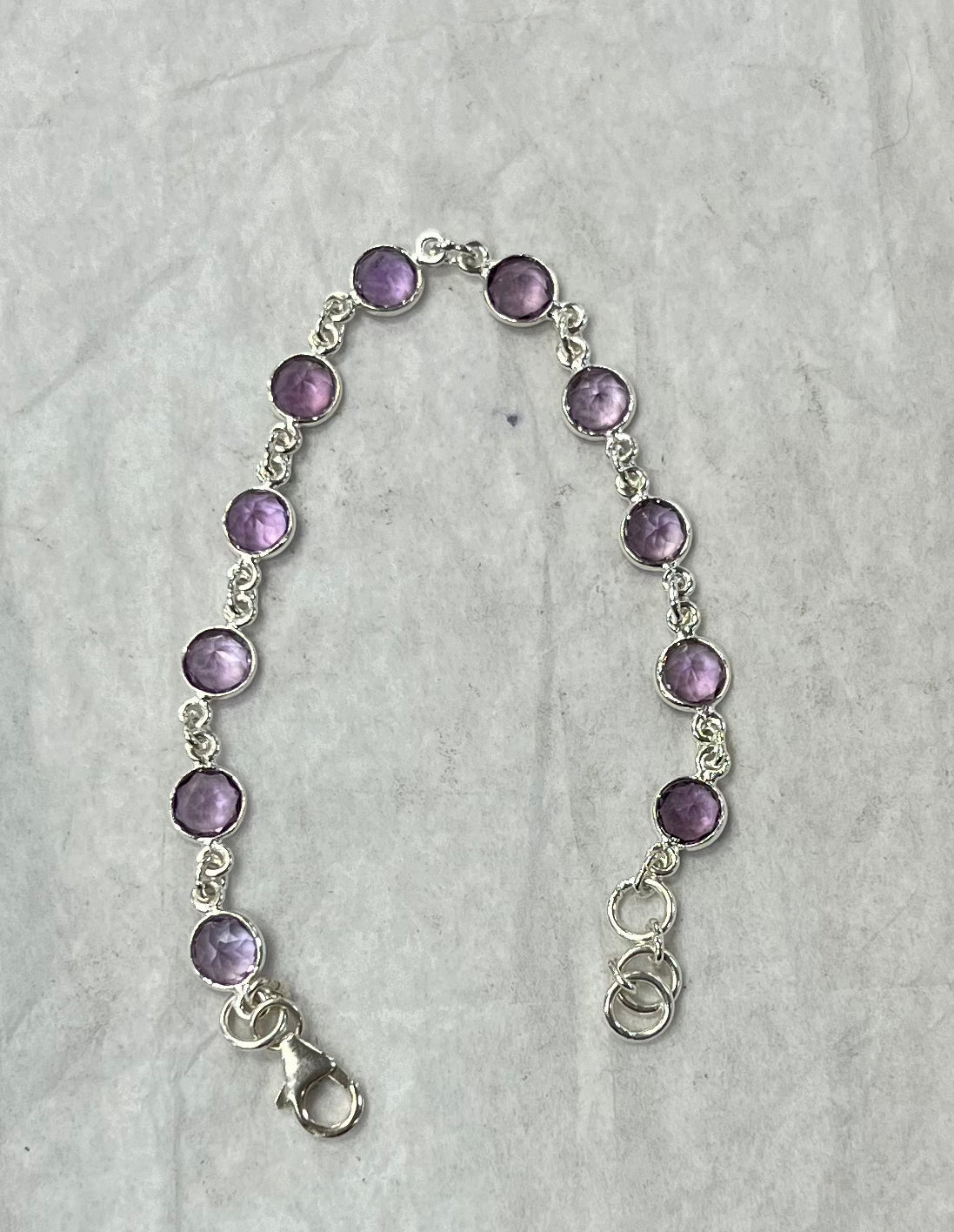 Silver Chain Linked Rounded Stud Amethyst Bracelet