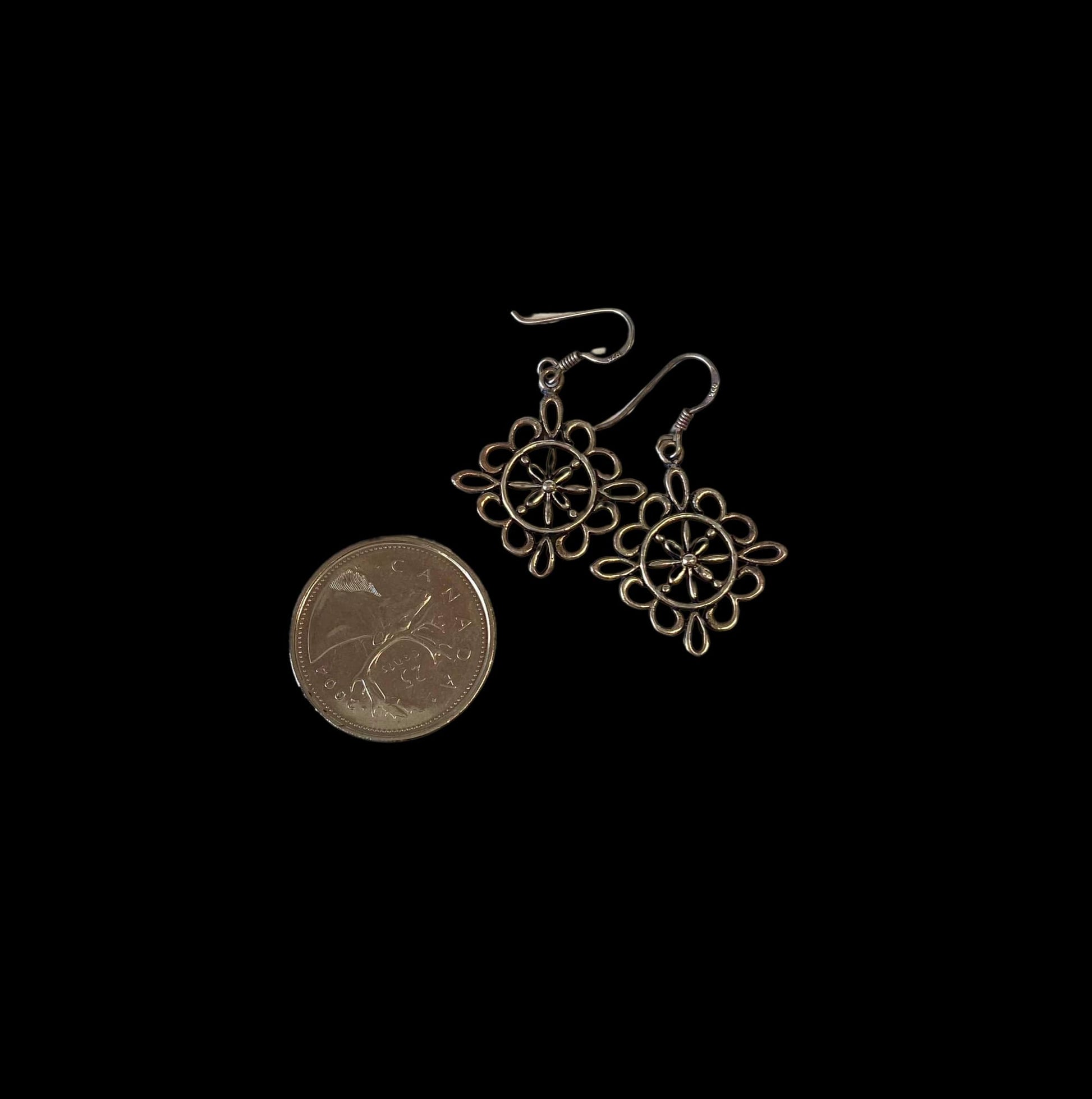 Sterling silver earrings with floral motif designs.