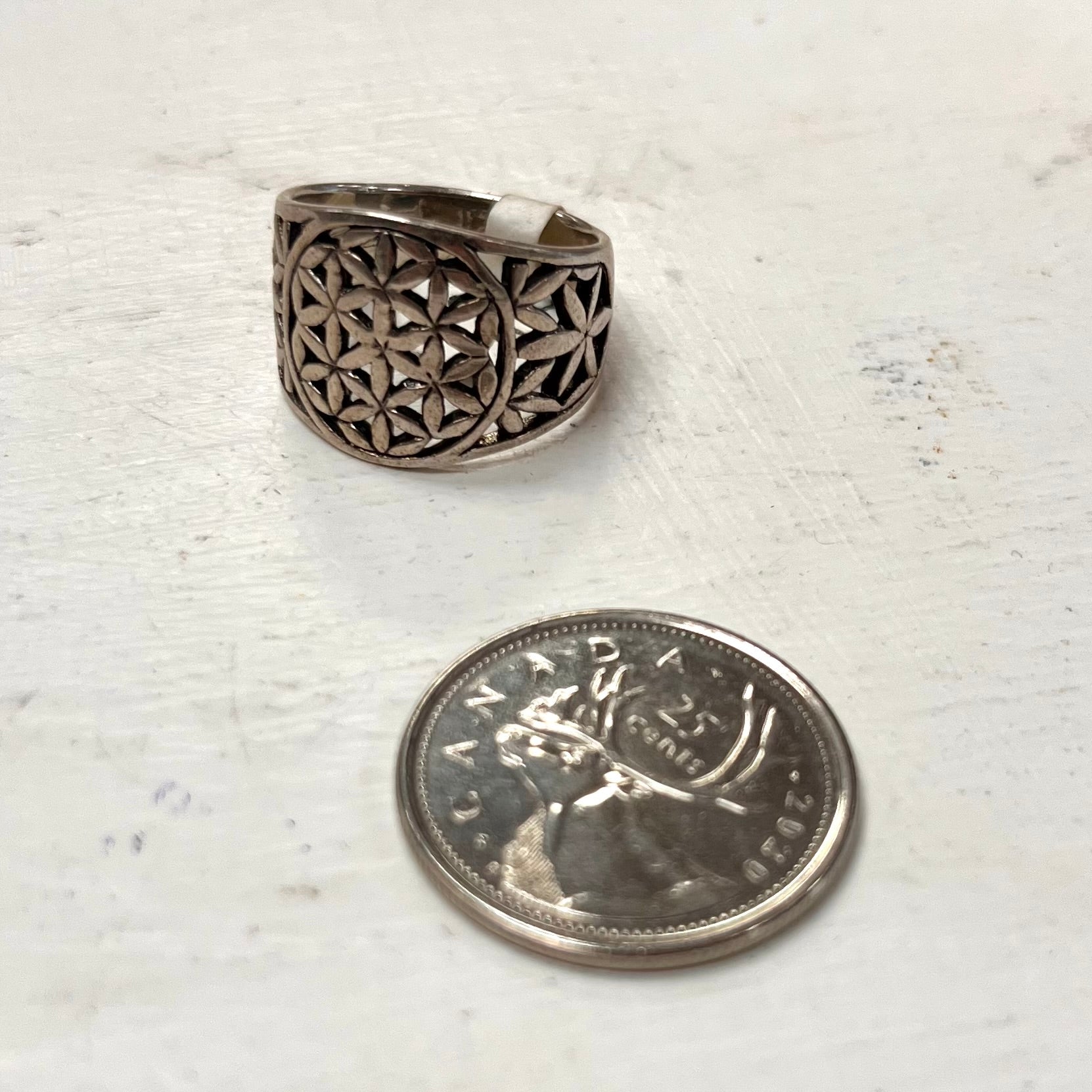 The Flower of Life is a sacred geometric symbol made of overlapping circles. It represents creation, unity, and the interconnectedness of all life. Often used in spiritual practices for healing, protection, and raising energy.