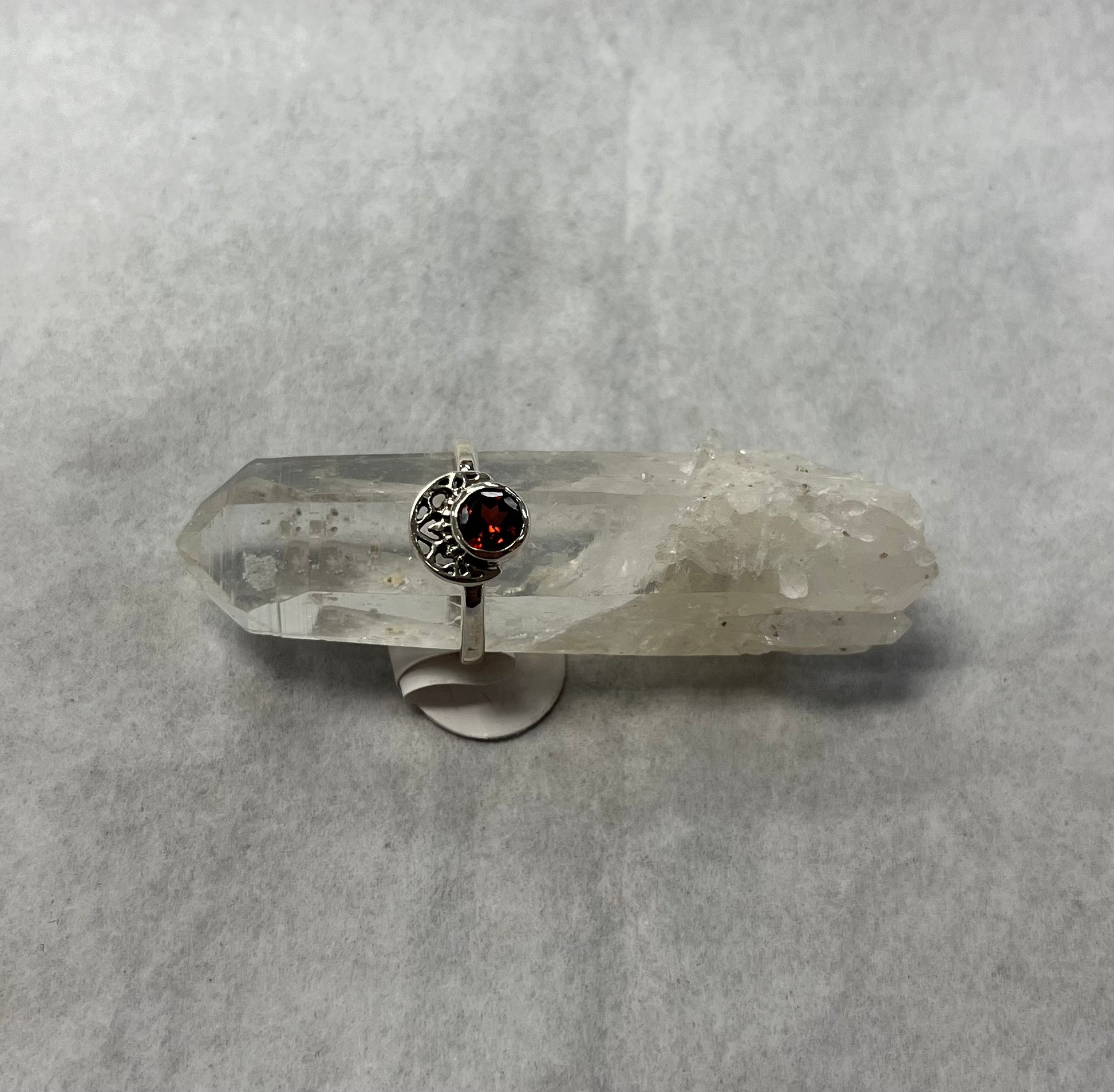 Silver detailed Moon and Gemstone Ring (Various Stones)