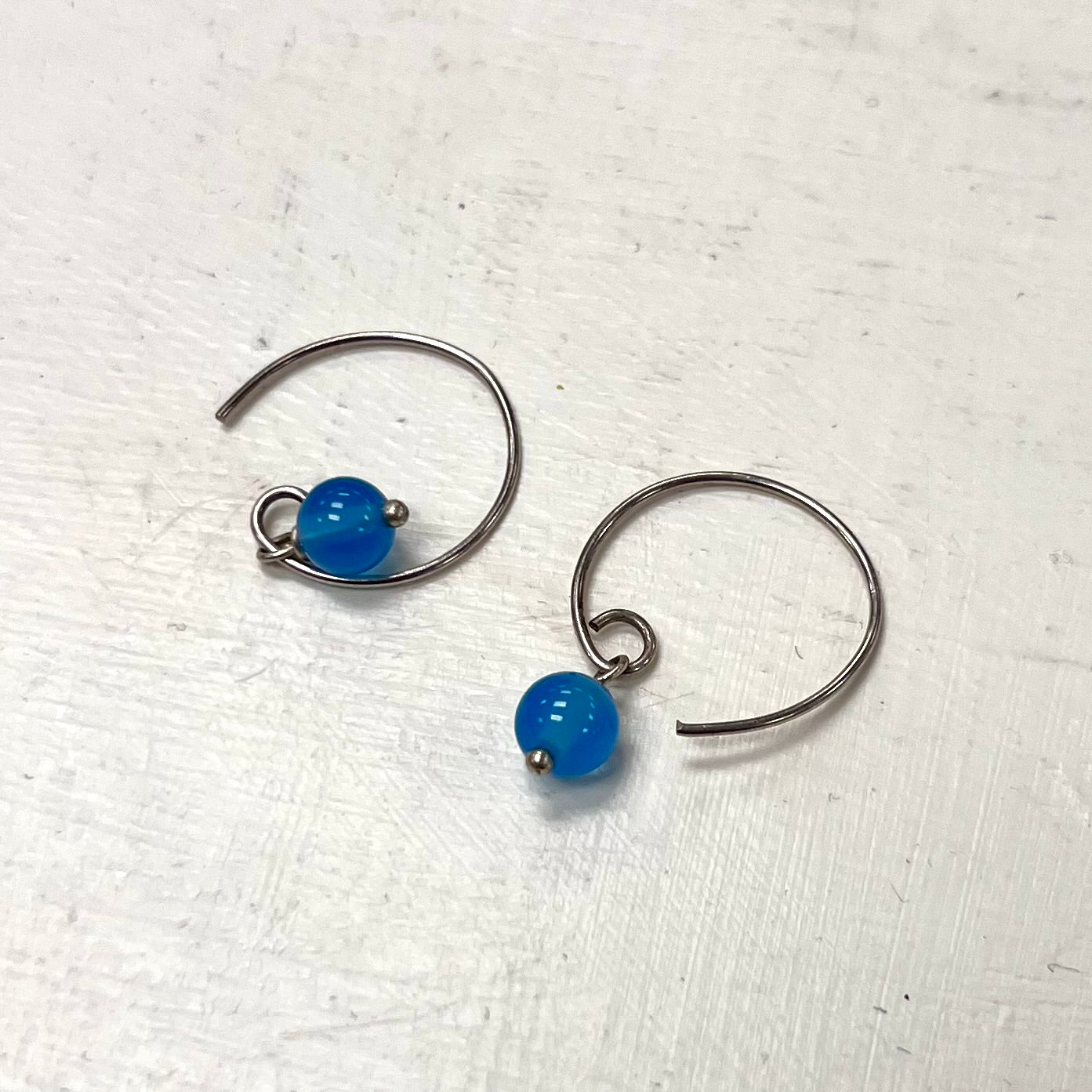 Silver Open Hoop Earring with Blue Opalite Bead