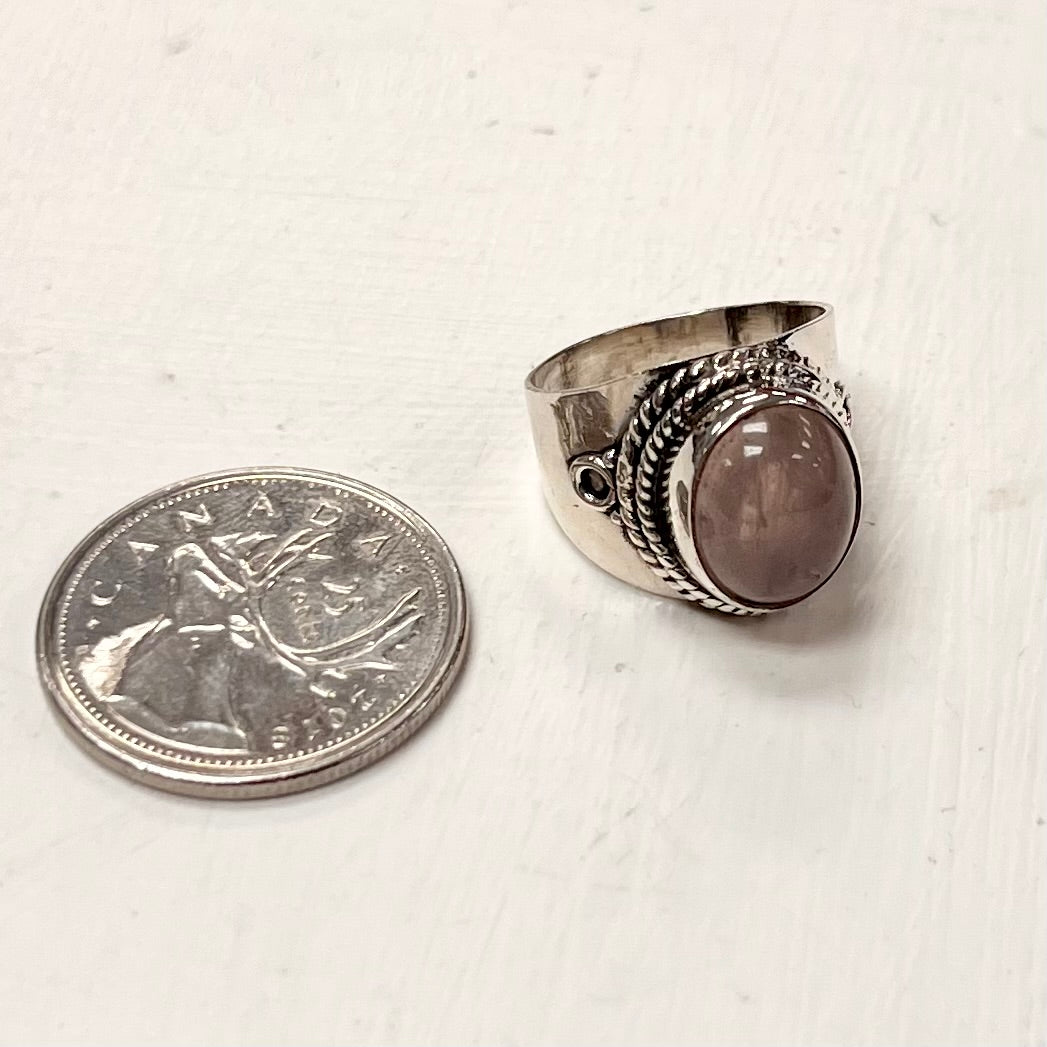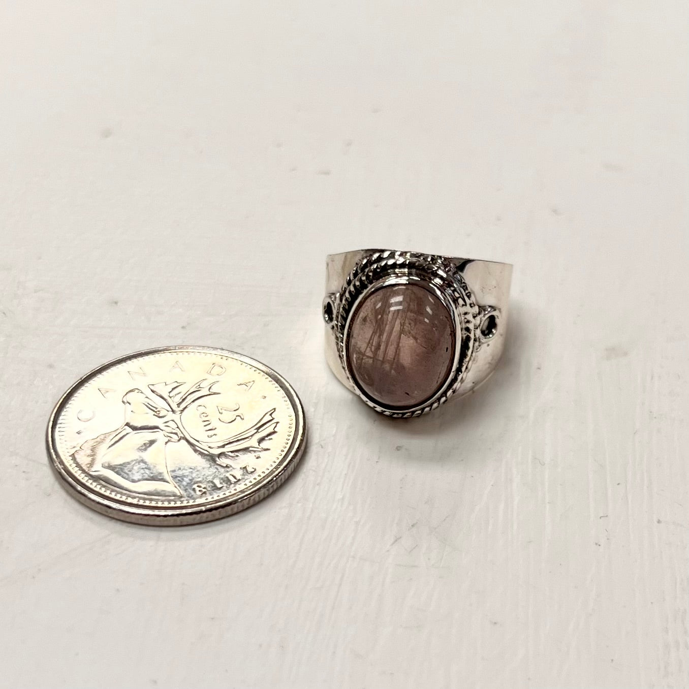 Silver Oval Masculine Style Rose Quartz Ring Size 6