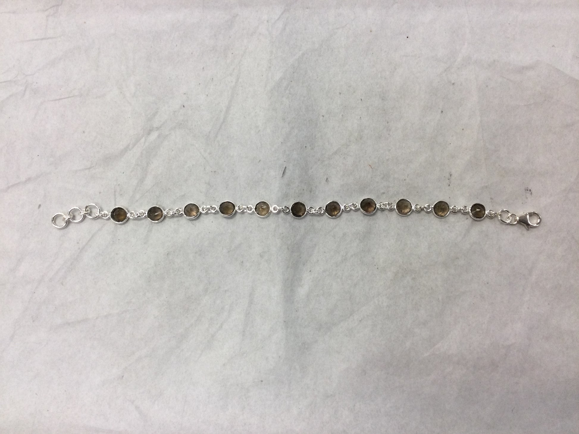 Sterling silver bracelet with Smokey Quartz set in circles shapes, 7” long