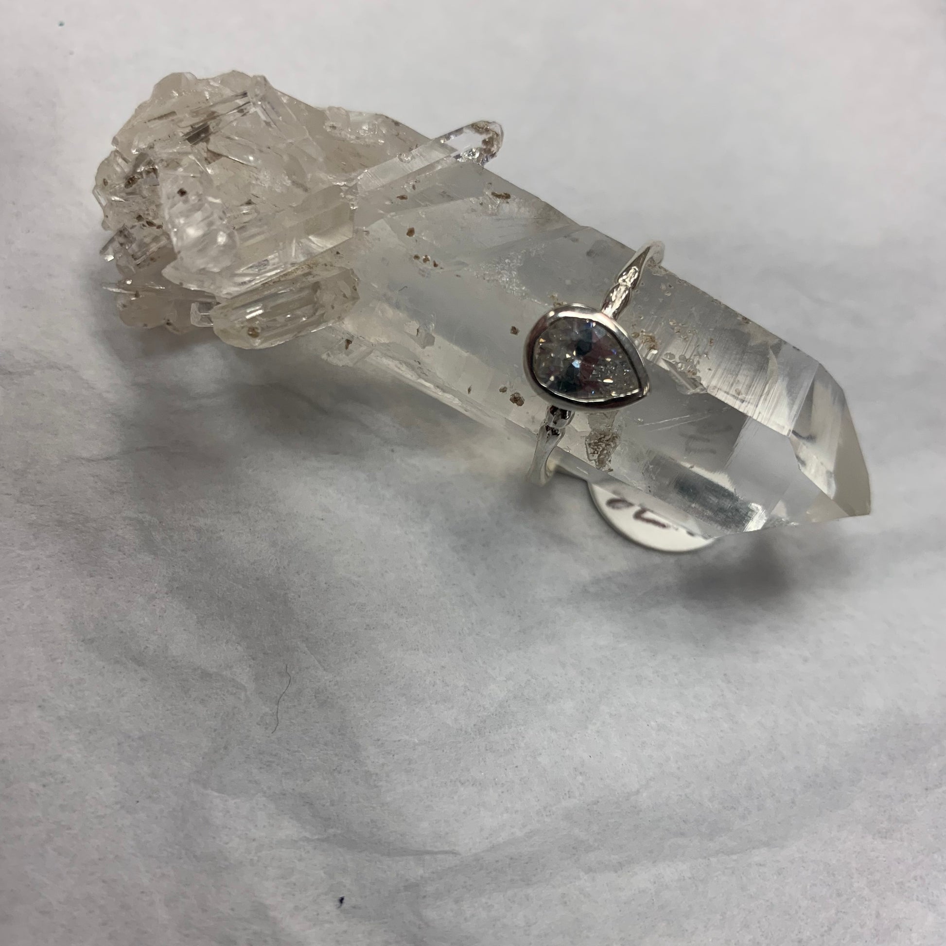 Silver Tear Drop Clear Quartz Bone Shaped Ring Size 7