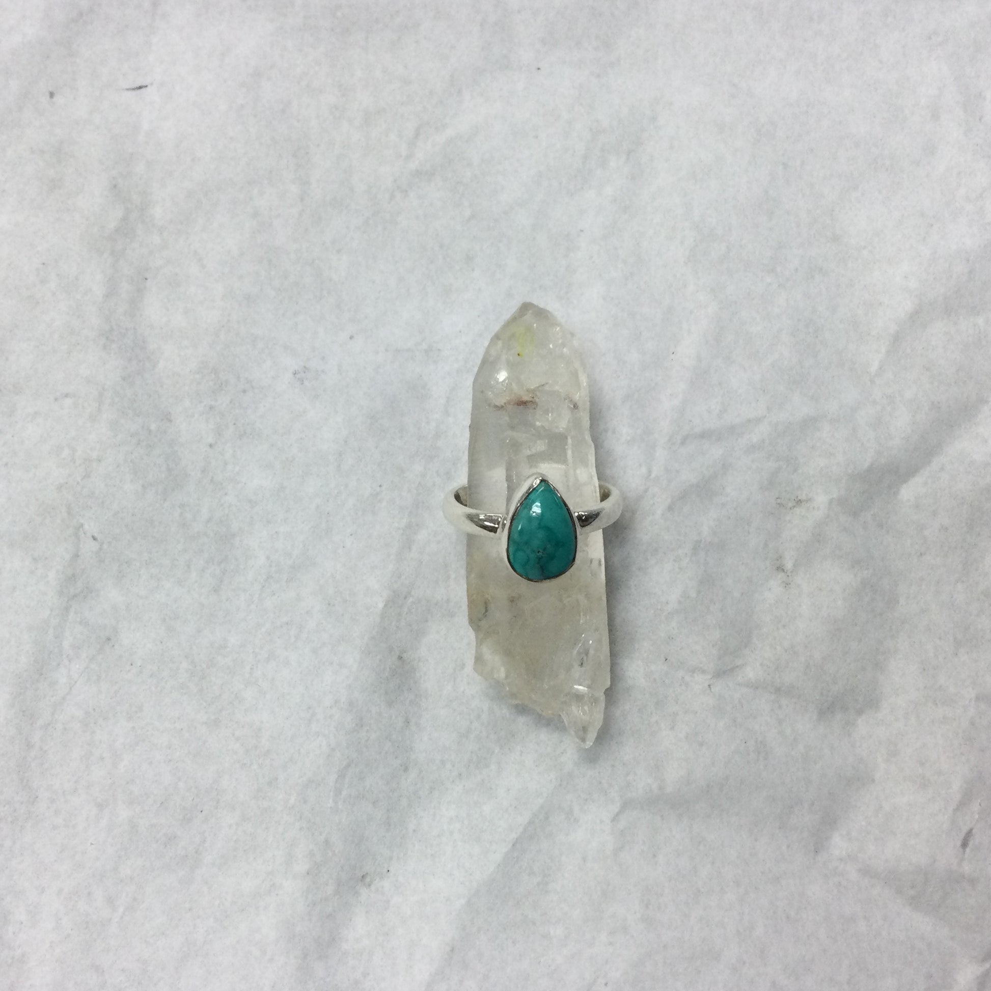 Silver Teardrop Polished Turquoise Ring - Size 5