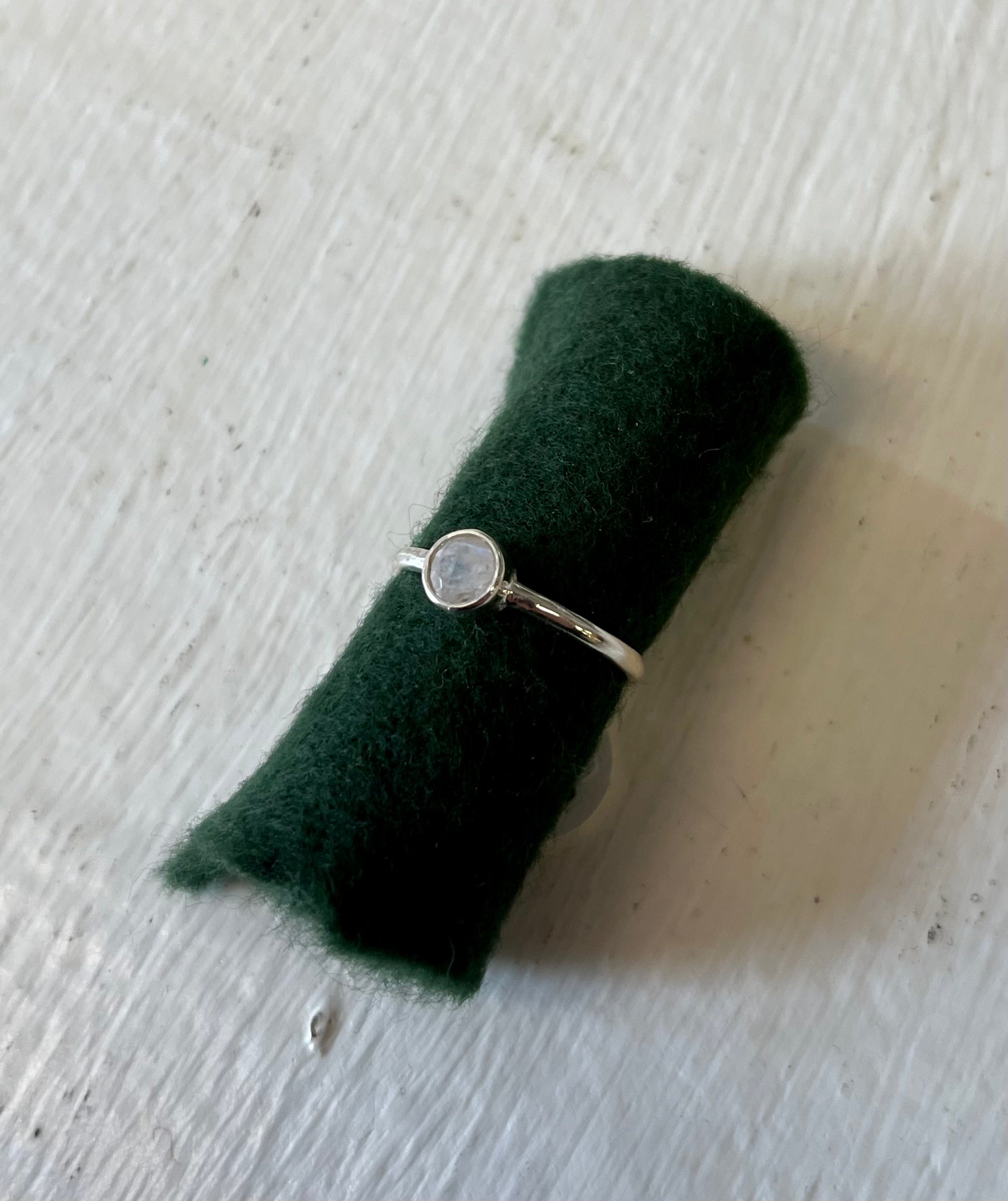Simple Faceted Moonstone circle Ring in Silver Size 9