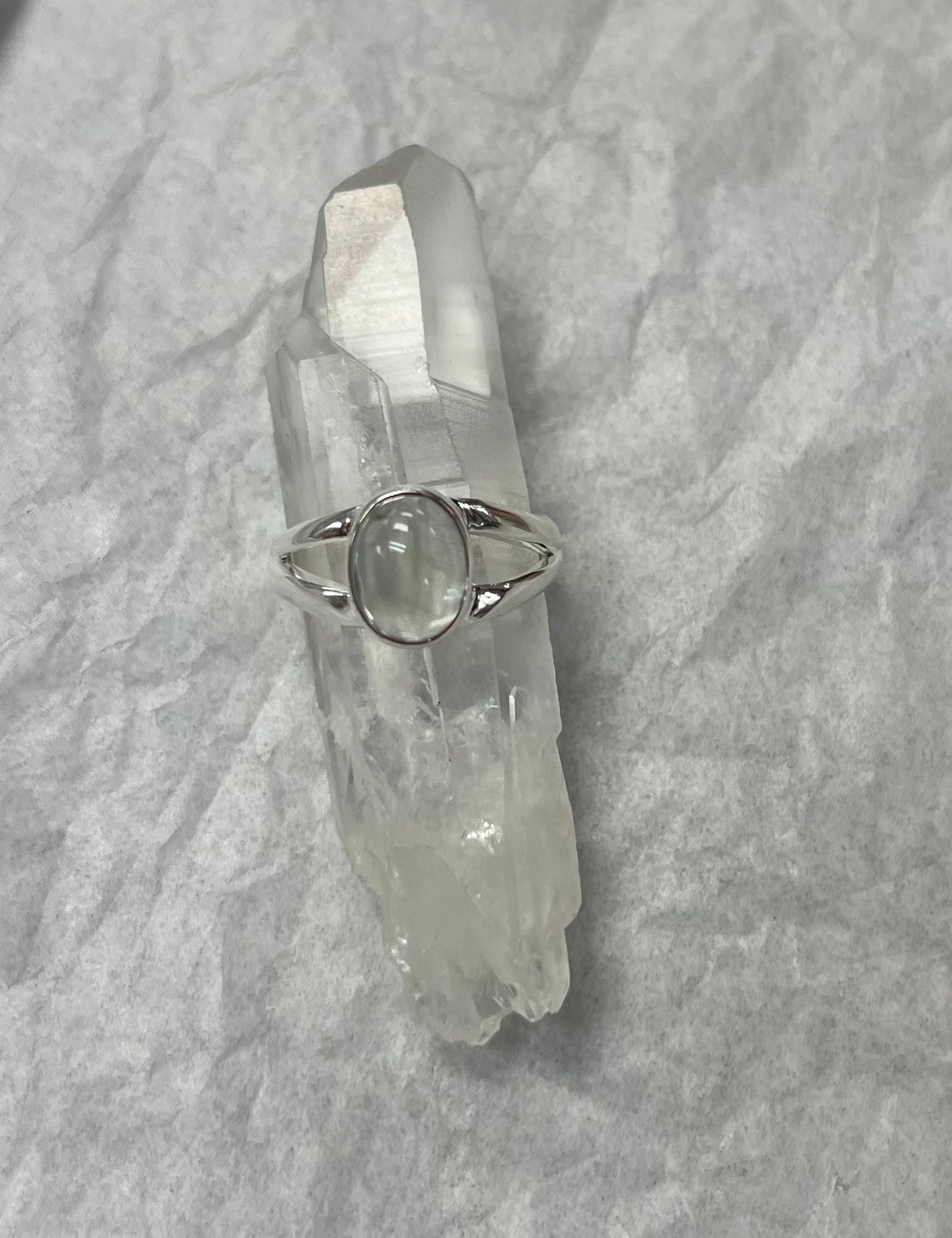Simple Silver Clear Quartz Ring Oval - Size 6