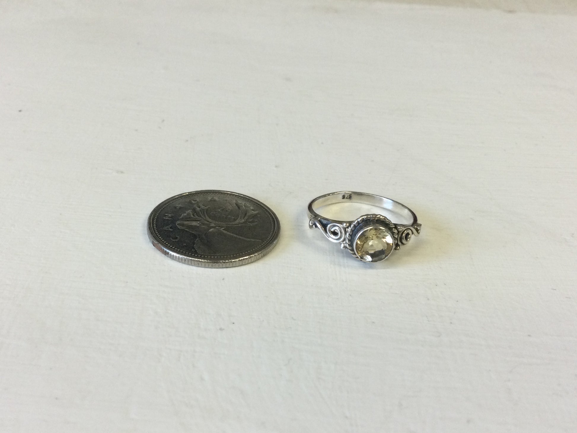 Small Round Citrine with Swirls Silver Ring