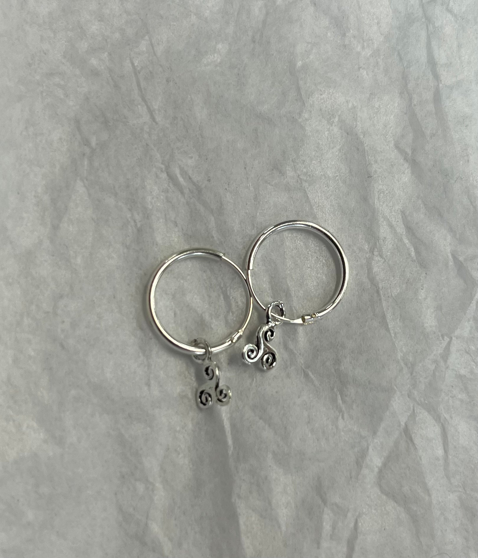 Small Silver Hoop Earring with Triskelion Charm Dangle