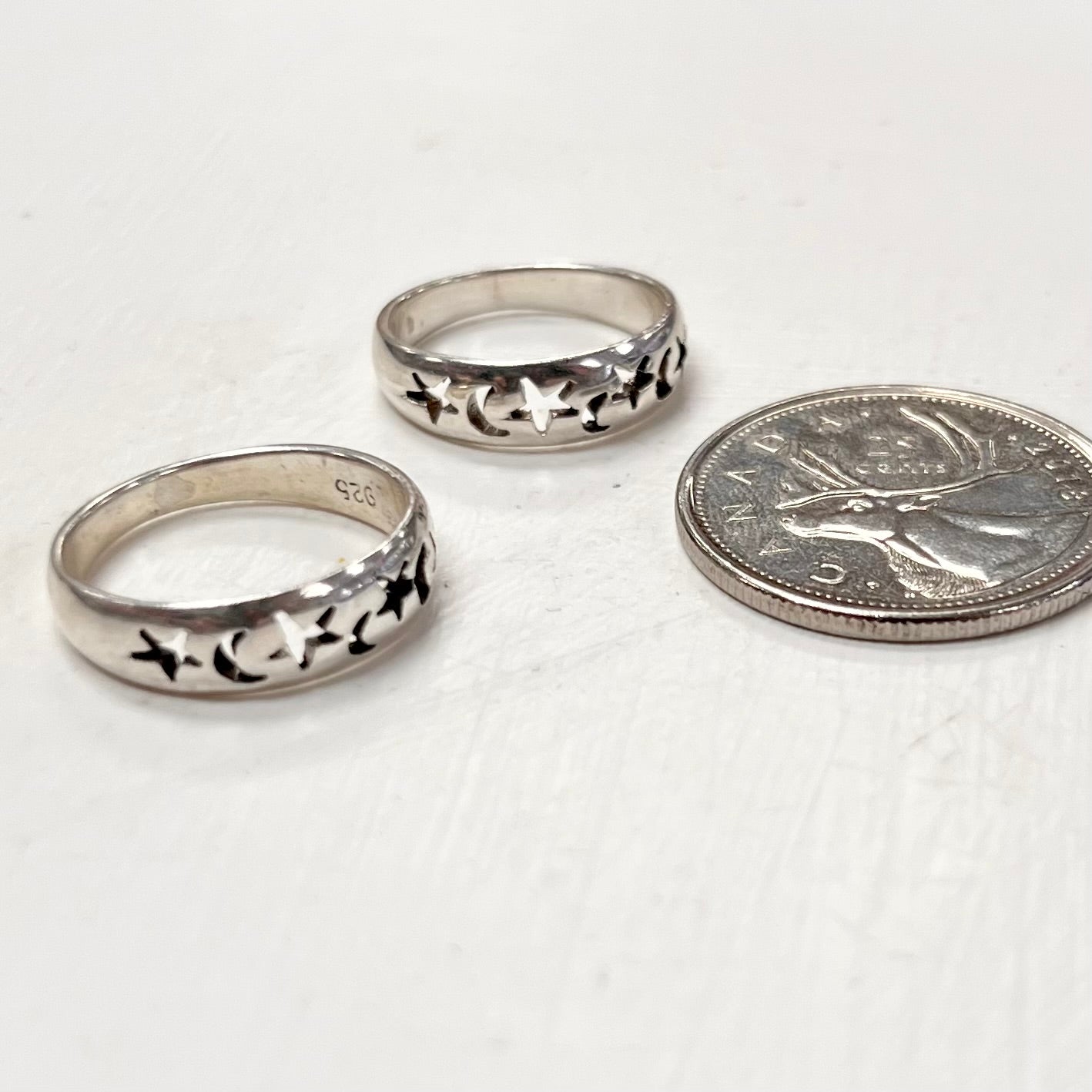 Stars and Moons Silver Band Ring 5mm