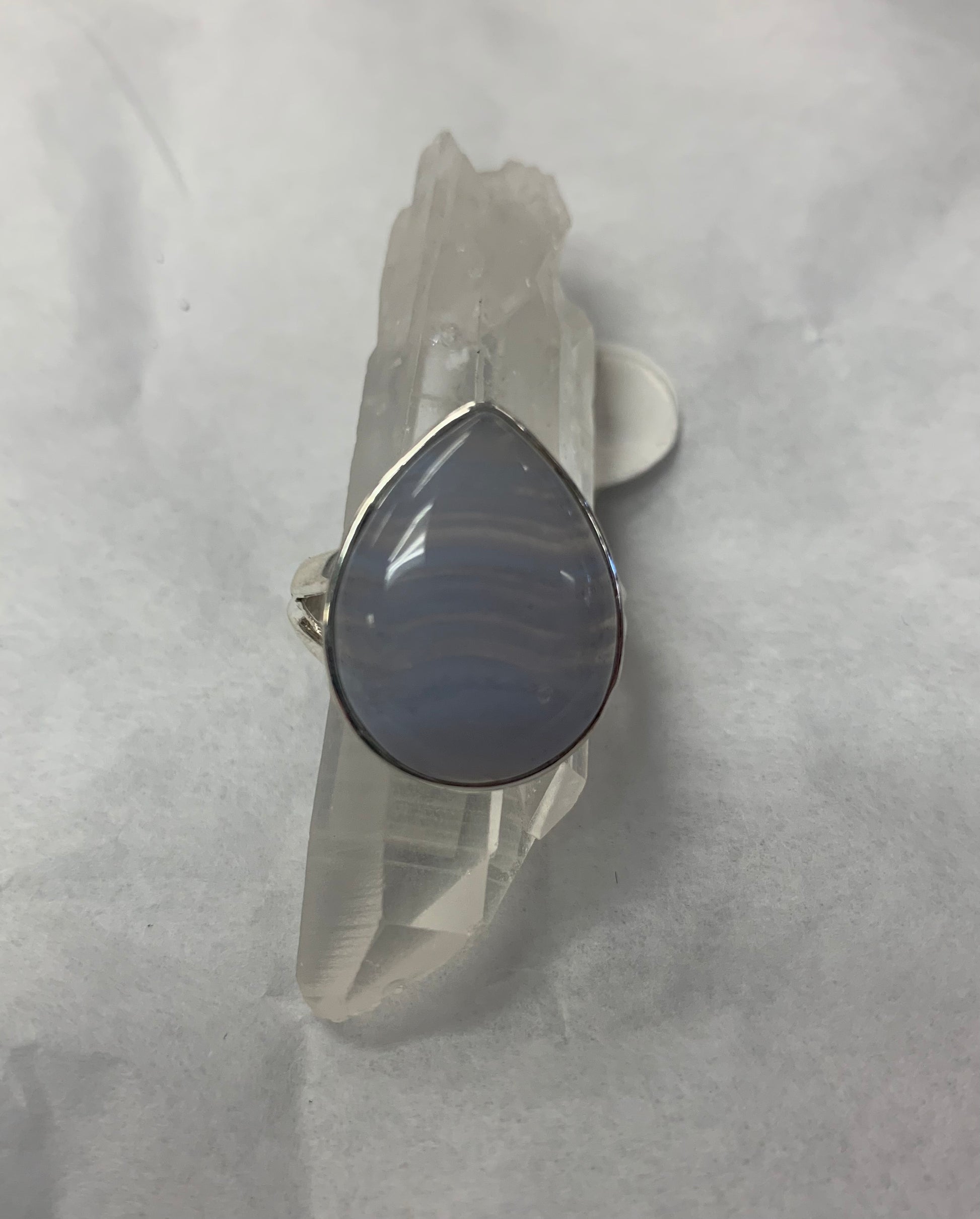 Tear Drop Blue Lace Agate Ring in Silver Size 8.5